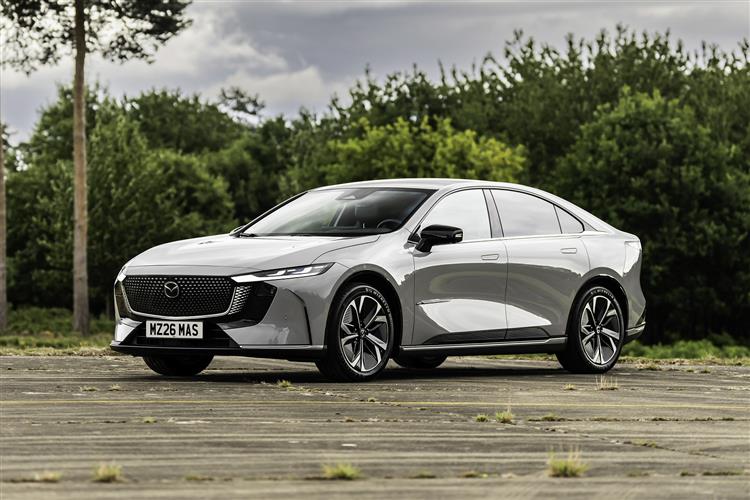 The general reticence of European buyers to get on board with the full-EV revolution has been matched by Japanese maker Mazda. Here though, the Hiroshima brand has entered the electric market in earnest with this car, the Mazda6e. Prior to this model's arrival, the company had bought us only one electric model, the feeble-ranging MX-30; and even that has mainly been promoted of late in its alternative REX combustion form. In the short term, Mazda thinks big environmental gains are to be made from better electrifying combustion technology, not from flooding the roads with BEVs, so it's mainly concentrating on that. But at the same time, it has to have a presence in the full electric market, so it's turned to Chinese tech giant Changan to develop a bespoke EV powertrain. That was first seen in a car badged as the Mazda EZ-6, which is assembled in China by Changan and was launched at the Beijing Auto Show in 2024. The Mazda6e is basically a more Mazda-influenced and European-ised version of that same model. Let's take a closer look.
