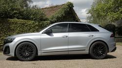 The intended emphasis with this Q8 is far more on comfort and luxury than it is on lithe handling. Which is why Audi uses the full-length version of the Volkswagen Group's MLB-Evo architecture for this car, rather than the slightly shorter, more agile design of this chassis fitted to a rival Porsche Cayenne. As you'd expect, it's the same platform as features in the Q7, though here, the Ingolstadt engineers have fitted it out with shorter springs and larger wheels - which is unfortunate because both detract from the supple ride that ought to have been this Q8's calling card, fitted out as it is with standard air springs for the aluminium five-link front and rear suspension. To be frank, we've tried passively-suspended luxury-segment SUVs that have handled poor surfaces better. We'd hoped that the brand might have addressed this issue as part of this facelift, but as previously, unless you stretch to the six-figure sums required for the fastest SQ8 and RS Q8 versions, the drive dynamics of the mainstream models fall into that no-man's land between comfort and sportiness. Yes, as before, at speed through the turns you get excellent traction and decent body control. But this Audi's still much happier when you're not throwing it about. Or when you're towing; it can tug along up to 3,500kgs and 'off piste', the air suspension can raise the car as much as 254mm off the deck. Given that the brand is no longer developing combustion engines, it's no surprise to find that there are no changes to the two conventional powerplants that lie beneath the bonnet of this revised Q8. They're both 3.0-litre V6s, a 55 TFSI petrol unit with 340PS and the 50 TDI diesel with 286PS that we tried. As before, both models are fitted with the brand's 48V mild hybrid system with its belt-driven starter motor. And drive via an 8-speed Tiptronic auto. Plus of course there's standard quattro 4WD, which divides torque front-to-rear in a 40:60-split. When required, it transfers the majority of power to the axle with the better traction. The mainstream alternative is the 394PS petrol Plug-in Hybrid 55 TFSI e model, now improved with a larger 25.9kWh battery which improves EV driving range substantially to 51 miles. Your two other Q8 model options both use a sonorous but thirsty 4.0-litre petrol V8, which offers 507PS in the SQ7 and a prodigious 600PS or 640PS in the RS Q8. These variants get the All wheel steering (also available with top 'Vorsprung' trim on an ordinary Q8). And can also be fitted with a 'sport differential' and electromechanical active roll stabilisation.
