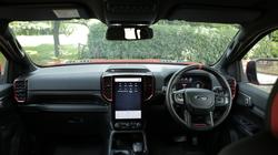 The old Ranger Raptor's party trick was the way it could 'float' over lumpy surfaces at speed. This one builds upon that attribute, thanks to dampers further developed by US motorsport specialist Fox. These feature what's called 'live valve' technology, are adaptive for compression and have given Ford's engineers a wider window for tuning ride and handling. Under the bonnet, the emphasis this time round is on a twin turbo 3.0-litre EcoBoost V6 petrol engine, tuned by Ford Performance to produce 292PS and a thumping 491Nm of torque. This unit features a race-bred anti-lag system first developed for Ford's GT supercar and of course it sounds hugely better than the previous 213PS 2.0-litre diesel (which continues for those still wanting it). On the move, engine sound is something you can alter in volume and timbre by cycling through the seven drive modes, four dedicated to off road driving and three for tarmac use. 'Baja' is the loudest, most anti-social and most appealing of these, intended for rapid off-terrain use. Lower speed off road stuff is dealt with by three other settings; 'Rock Crawl', 'Sand' and 'Mud/Ruts'. The Raptor's 4WD system has the usual 2H, 4H and 4L modes, plus an extra 4A setting for better 4WD activation on sealed surfaces. Unlike an ordinary Ranger, this one also has a locking front differential too. It's a lot more capable on road too, thanks to tweaked, sharper steering and a revised, lightened version of the 10-speed auto gearbox carried over from the previous generation model, which you can activate with steering wheel shifters. You might find this pick-up a challenge in town though; at 2,028mm wide, the Ranger Raptor is 110mm wider than a standard Ranger, so tight supermarket parking slots could prove as much of a challenge as the Rubicon Trail.