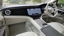 This car is prodigiously heavy - up to 3,118kg - much of which is accounted for by the prodigiously large 118kWh battery all versions of this model now use. The mainstream variant choice kicks off with the 360hp EQS 450 4MATIC, which makes 62mph in 4.1s. Alternatively, there's the 544hp EQS 580 4MATIC, which improves that sprint time to just 4.7s. Both EQS SUV 4MATIC models claim a range of up to 401 miles and a top speed of 130mph. The other EQS SUV variant is for oligarchs only, the Mercedes-Maybach EQS 680 SUV. This has 658hp, gets to 62mph in 4.4s and offers a range of up to 369 miles. You might not expect the dual motor 4WD system fitted on all EQS SUV models to take this car far off piste; you'd be wrong actually. With the optional 'off-road' driving mode fitted, the air suspension rises by 25mm and primes the 4MATIC system for slippery terrain. The 360-degree camera system can also provide off-road graphics - and special images like the so-called 'transparent bonnet view', ideal when driving over rocky surfaces. There's four-wheel steering too, with the rear wheels able to turn by up to 10-degrees. Which at parking speeds means an extraordinarily tight turning circle for a large SUV. Go faster and you should find that the car's ability to vary the amount of drive to each individual wheel depending on the grip available makes it feel more agile through the turns than the huge kerb weight would lead you to expect it to be. When cruising, the air suspension's ride height falls at above 74mph, which improves aerodynamic efficiency and ups the driving range. Refinement and luxury are central to the EQS SUV, which means special acoustic foams as well as rubber insulation of the electric drive units have been used to reduce interior cabin noise to a near whisper.