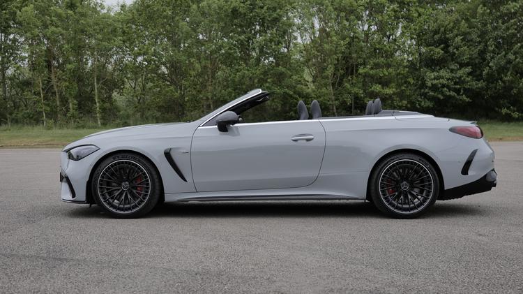 Expect the CLE Cabriolet driving experience to be a little sportier than previous mid-sized Mercedes convertibles. The stiff MRA platform borrowed from more conventional C and E-Class models helps here. As does track width increased by 40mm at the front and 70mm at the rear. And a ride height dropped by 15mm over a C-Class saloon, which lowers the centre of gravity. Those who also pay extra for the optional adaptive damping and rear wheel steering systems should get sportiness approaching that of a rival BMW 4 Series Convertible. You'll want to know about engines. As with this model's predecessors, the core part of the range is made up of 2.0-litre petrol and diesel turbo units, though in this CLE they gain EQ Power 48V mild hybrid assistance. The 197hp CLE 220d diesel and the 204hp CLE 200 petrol both take around 8s to reach 62mph, the latter model's engine tuned up to 258hp in the C300 4MATIC petrol, which gains AWD and improves the sprint figure to 6.6s. Top of the mainstream range is the CLE 450 4MATIC, which uses a straight six 3.0-litre petrol powerplant with 381hp, which makes 62mph in 4.4s. If that's not fast enough, then you can also talk to your dealer about the Mercedes-AMG 53 4MATIC+ version, which uprates the CLE 450 model's straight six to 449hp. Beyond that is a top Mercedes-AMG CLE 63 4MATIC+ model with a twin turbo 4.0-litre V8. Aside from that '63', all the engines drive via 9-speed torque converter auto transmission with paddle shifters.