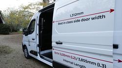 From launch here, this EV variant was offered with the option of a smaller 40kWh battery, but Nissan's now discontinued that because it turned out that everyone wanted the more usable 87kWh battery we're trying here, which is rated at up to 285 miles between charges and is paired with a 143bhp motor developing 300Nm of pulling power. You'll need to restrain yourself from using all of that torque if you're to get anywhere near the EV mileage figure we just quoted. To manage that, you're also going to have to virtually always engage a provided 'ECO' button on the dashboard (which dampens throttle response considerably); and make sure you always engage the 'B' regenerative drive format via this gearchange stalk behind the wheel. Regen braking in the Insterstar-e works via a clever power-assisted 'one-box' dynamic braking control system that keeps braking effectiveness and pedal feel the same, regardless of how much weight the van is carrying. It also triggers the automatic emergency braking system sooner (response time has been halved over the old model) and enhances the harvesting of regenerative energy, theoretically extending the range of this electric version. In city streets, we found all-round visibility to be good for a large van of this size. The squared-off front end makes it easy to work out where the extremities lie, helped by a parking sensor system that, interestingly, can be had with three different sound formats - 'Pure', 'Accurate' and 'Expressive'. The shorter wheelbase and redesigned front axle of this second generation design provide for extra manoeuvrability, including a 1.5-metre-shorter turning diameter, now rated at 12.8-metres for the L2 and 14.6-metres for this L3 version.