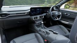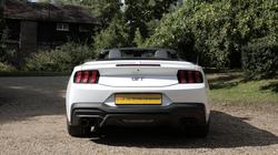 There's not a lot of extra weight with this Convertible body style - no more than around 80kgs - so you'd expect it to drive much like the Coupe and, by and large, it does. If you've paid the extra to have your Mustang with a fabric top, you're going to want to drive it roof-down as much as possible - which isn't as easy as you might think. For years, just about every other sports convertible you can think of has had a top that would operate at low speeds at the push of a button, but the 'Stang has never bothered with that kind of user-friendliness - and still doesn't now. So every time you want to put the roof down, you have to stop; wrestle with an overhead lever; then wait for 10 seconds as the roof mechanism does its thing; before you can set off again. Which in a climate as changeable as ours is hardly ideal. Just chalk it up alongside the many other things you'll have to get used to if you're a new convert to Mustang motoring. There are plenty of them. The lack of the kind of turbocharger that almost every other modern engine uses these days means a very different kind of reaction to your right foot. And if you've gone all-out with the whole Mustang thing and chosen manual transmission, then you might feel the years rolling back to sportscars of your youth as you clunk the 6-speed stick shift from gear to gear. We tried that manual 'box when we tested the Fastback version, so we thought we'd sample the auto on this cabrio that most customers end up with, a 10-speed torque converter set-up, via which the car gets to 62mph in 5.0s, a tenth slower than the Coupe and just under half a second quicker than even an expert driver could manage with a stick shift. Top speed is restricted to 155mph. Plenty of similarly-priced sportscars match those kinds of performance figures these days, but none of them deliver that speed much like a Mustang does. These days, for our market anyway, the classic 5.0-litre 'Coyote' V8 engine is the only one available, with 446PS and a glorious Dambuster-style rumble that of course you can hear all the better roof-down in this Convertible. With the roof down, there's a fair amount of buffeting, but you can just about talk to your front seat passenger at or around the legal limit.