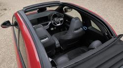 As you'd expect, everything here is just as in the fixed top version. Sound is what sells an Abarth. Always has. So to be successful, the 500e has to sound like no EV ever has. It does. The brand has installed a set of speakers beneath the car to faithfully reproduce the engine note of one of its rorty petrol powerplants. And the speakers are linked to the throttle so that as you accelerate, the sound builds, just as it would in a 595 or 695. It sounds remarkably realistic too - and you don't have to take our word for it; a sound generator on the Abarth website will play the powerplant to you. You might dismiss that as a gimmick, but you can't argue with the performance facts here. Namely that the 500e is an all-round faster car than the 595 petrol model it replaces - which doesn't initially seem very likely given that it's much heavier and has 20bhp less in total output. Set against that though, is that the full 152bhp output is of course available immediately, rather than hampered by the turbo lag you'd get in the petrol versions. That instant torque (234Nm of it) propels the car from rest to 62mph in just 7 seconds flat. Even more significant is the 25 to 37mph overtaking increment time of just 1.5 seconds (a full second faster than the 595). 12 to 25mph takes only a second (50% faster even than the 695). Abarth says the car is a second faster around Alfa Romeo's Balocco test track than the 695. There's the usual single-speed EV auto transmission and you work it through three drive modes - 'Turismo', 'Scorpion Street' and 'Scorpion Track' - which can alter brake regen strength and power output.