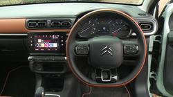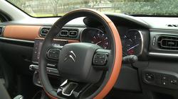 At last, Citroen models are starting to look unique and different once more. In 2014, the brand's C4 Cactus model started that trend and this third generation C3 continued it with a look that according to its maker is 'distinctively offbeat'. The styling's certainly unusual, all fluid curves and muscular flanks, with a stance that's almost SUV-like. Get a version that's all colour-kitted out and you'll really be making quite a supermarket statement. Top versions got a 'ConnectedCAM' camera that sits behind this rear view mirror, allowing owners of plushly-specified C3 models to share road trip photos and videos directly with friends and family. But there's much more than that to set this cabin apart. The designer luggage-themed over-stitched door pulls for example; the retro-style instrument dial graphics; the intricately-fashioned chrome-trimmed vents; the door bins with their unusual contrast-coloured interiors; there's even a 'reverse Airbump' theme happening on the doors and the speaker grilles. It all attempts to continue the cheery demeanour established before you got in. Once you're inside, it's quickly evident that this isn't one of the more spacious superminis in the segment. The room on offer will be fine for kids of course, but adults stuck behind reasonably tall compatriots up-front may well struggle a little when it comes to room for their legs and knees. But then how often is it really necessary to transport burly adults for any real distance in a supermini? Almost never. For the role that a car like this will typically be asked to play in an average family, what's provided here will, for most buyers, be probably quite sufficient. As for the boot, well lift the tailgate and after the relative restrictions of the rear seat, it's something of a surprise to find that the 300-litre space provided is one of the larger cargo bays in the supermini segment.