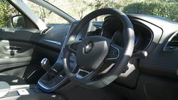 You'd expect the brand that invented the compact MPV to define the way it should look. Is that what Renault did here? Many will think so. Laurens van den Acker and his stylists attempted what was in their words 'a more modern and sexier take' on a compact People Carrier of this kind, basing this model on the 'R-Space' concept car that appeared back in 2011. This MK4 Scenic doesn't have the innovative backwards-opening rear doors of that design, but it shares the same curving silhouette, set off by huge standard 20-inch wheels that are intended to make the roofline look lower. They do - and it isn't. In fact, this car sat 40mm higher off the ground than its predecessor as part of Renault's attempt to imbue trendy Crossover cues into its design. But that only goes so far, the heavily raked windscreen still visually positioning this car very much as a People Carrier - and quite a large one by mid-sized MPV standards. Behind the wheel, what'll you notice? Well the answer's obvious in a top Scenic - the 8.7-inch 'portrait'-style centre dash 'R-Link 2' touchscreen, there to bring a touch of Tesla to this humble family MPV. In the second row, you'll start to appreciate some of the benefits of buying five-seat MPV, rather than the sort of 5-seat Crossover model you might have had for similar money. That kind of car would give you the same sort of basic rear bench you'd get on any conventional family hatchback, perching the unfortunate middle rear passenger on some hard and narrow piece of bulging foam with legs astride a central transmission tunnel. Here, in contrast, you get a far more comfortable arrangement, with proper space for three adults, decent headroom (even with the optional panoramic glass roof fitted) and an opportunity to stretch your legs. And the boot? A little surprisingly, Renault didn't follow the trend in offering buyers an optional powered tailgate, but this one's fairly light to lift and raises to reveal a big square aperture and a reasonably low load sill that sits flush with the boot floor. If you need more space, you can drop the base panel to a lower position, which contributes to a 572-litre total cargo capacity with the back seats still in use. If you need more room, you can of course push forward the rear seats - and do so very easily providing you've avoided entry-level trim, thanks to the 'One-Touch' electric folding system that works either via provided buttons.