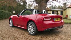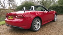 Reinventing any iconic design is always difficult. Get it right, as Fiat did with its new-era 500, and the rewards are massive. Get it wrong and the end result can look awkward and contrived. We'll leave it to you to decide which of these extremes are represented here, but would point out that the Turin stylists did at least make every effort to give this car its own distinct identity, not an easy thing to do given that it's essentially a re-skinned Mazda MX-5. It's from the side that you appreciate the extra length that Fiat has added to this design - it's 139mm longer than an MX-5. That might not sound much but in the metal, the change is enough to visually reposition this car - to the point where at first glance, you might well see it less as a dinky, nippy little MX-5 rival and perhaps more as a competitor for something like a Mercedes SLC or a BMW Z4. Key visual tweaks include the prominent lower side skirts and the 'swallowtail' rear haunches that directly reference the previous model. It's perhaps more significant though, to note that the alterations made have spoiled the standard MX-5 design's perfect 50:50 weight distribution. And inside? Well after all the changes made to the panelwork and the engine bay, it's something of a shock to find a cockpit carried over from the MX-5 virtually unchanged. There's a Fiat badge on the steering wheel, revised door panels and a softer touch, plusher material is used on the top of the dash. Otherwise, everything you see is exactly as it would be in the Mazda. We can understand why purists might object to that, but then a purist is unlikely to be considering an Italian sportscar built in Hiroshima anyway. Pragmatically speaking, there was really no need to change an interior that Mazda spent years in perfecting, offering as it does a driving position tailored to fit you like a glove. We should also talk about the hood, another feature that was unnecessary for Fiat to redesign in creating this car. It isn't electrically operated and it doesn't need to be because the opening and closing process is so simple - you just reach behind and pull up with one hand, a process that only takes a few seconds and requires activation of a simple roof rail clip-on catch. When conditions allow you to retract the roof again, it stows neatly into a compact space in front of rollover hoops separated by a clip-on wind deflector. One thing the roof doesn't do is compromise your bootspace - which is just as well since, as with any roadster, there's not very much of it. The extra length of this Fiat has freed up 10-litres more trunk room than you get in an MX-5 - there's 140-litres in total - but that's not going to make very much difference to the limited amount you can carry. If that's a problem, go and buy a hot hatch.