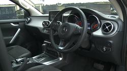 Let's face it, pick-up design is, by and large, pretty boxy and uninspiring. Which is why we were particularly admiring of 'Concept X-Class', the prototype model Mercedes paraded to tease interest in this X-Class before the production version was launched. Aesthetically, it was sleek and desirable in a way that no small truck ever previously had been, so it was a touch disappointing to find the finished showroom model rather more conservatively styled. It's got presence though - and hey, it's big, at least by European standards anyway, 40mm longer and 38mm wider than its Nissan Navara design stablemate. OK, so step up into the cabin and take a seat inside. Ever seen a pick-up interior quite like this? No, we hadn't either. Immediately striking is the centre of the dash with its twin dual panels of aeronautically-inspired air vents, which sit just below the free-standing tablet-style infotainment screen. Some writers have moaned that the hard, durable plastics used further down the dash and around the gearstick are inappropriate to a Mercedes. We'd only say that they're certainly not inappropriate to a pick-up: in our eyes, it's the kind of finish necessary for this model's station in life and anyway, there's plenty of compensation provided in the areas that don't have to withstand regular scuffs, scratches and kicks - the soft-touch top of the fascia and the silver-trimmed lower part of the centre stack for example. And in the back? Well here, six-foot passengers who don't mind their heads slightly brushing the roof lining will find themselves easily able to fit in behind six-foot front occupants. There's also the bonus of being able to flip up the seat base to access two hidden storage compartments or create an extra area for transporting items you don't want to consign to the cargo bay. How practical will this X-Class prove to be in day-today use? Pull down the lockable tailgate with its big centrally-mounted handle and once you get your stuff in, the cargo bed is usefully long, measuring 1,587mm, a segment-leading figure which makes this bay fractionally longer than that of a comparable Nissan Navara. Overall, there's a total loading capacity inside this platform of 2.48m2. So no, you don't have to sacrifice practicality to get yourself a bit of extra style in this segment.