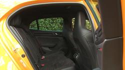 Some previous Renaultsport products have looked rather 'Max Power', a boy racer image that customers with more to spend would generally rather avoid. Hence, with this third attempt at R.S. Megane design, a car that was classier than anything the French brand had yet provided to the hot hatch market. There's certainly a pretty menacing front end, one dominated by a wide front bumper intake incorporating the Gun Metal Grey-painted F1-style front blade that's supposed to reference the brand's involvement in Grand Prix racing. As does the R.S. Vision LED lighting system's 'chequered flag-style' lower lamp design that this styling element flows out into. At the wheel, the driving position's brilliant, the supportive sports seat placing you perfectly in front of a grippy leather-trimmed three-spoke R.S. wheel. Through it, you view a 7-inch instrument cluster screen that usually prominently displays a rev counter and a digital speedo. Pressing the 'R.S. Drive' button at the base of the centre stack delivers a red theme, both to this display and that of the central portrait-style touch screen. As well as the usual media, navigation and informational functions, this centre-stack 'R-Link 2' display allows you to access what was a key option for this car, the 'R.S. Monitor', a telemetry tool with the kind of read-out menu that presumably Renault's engineering team must peruse in the F1 pit lane. Here, there's digital and graphical feedback on almost every dynamic element, as well as track tips and a lap timer. An additional unique 'R.S. Monitor Expert' feature will even let you film your driving sessions, then overlay the footage with telemetry data and share it over social media. If that's your thing. And in the back? Well here of course is where you'll most appreciate this generation model's switch from coupe to five-door body style. We had quite high expectations here, given the standard Megane donor model's relatively lengthy wheelbase and the fact that it's one of the widest cars in its class. In the event, accommodation in the rear is quite tight, despite Renault's insistence that there's more shoulder room than most rivals can offer. At least you can accommodate three adults across the back if need be - something that annoyingly isn't possible in a rival Honda Civic Type R. As you'd expect, cargo room is much more generous than was the case with the previous coupe model, capacity having risen from 344 in the previous generation model to 434-litres.