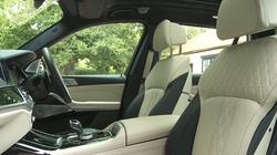 US, Asian and Middle Eastern buyers want their luxury SUVs to be big and very imposing, so the X7 is. If you want one here, that's what you're going to like about it. Is the huge over-sized front grille a step too far? Not if you take the view that there's simply no point in a car that's 5.15-metres long, 2-metres wide and over 1.8-metres high being aesthetically shy and retiring. This one certainly isn't. As is appropriate in such a large SUV, you climb up into the driver's seat of an X7 and find yourself positioned commandingly in a cabin that's high in quality but perhaps lacking a little in terms of sheer specialness. It's hard to fault the cabin ergonomics, which see you perfectly positioned on brilliantly supportive multifunctional 'Comfort' seats trimmed in stitched Merino leather. And viewing digital screen technology delivered by the 'Live Cockpit Professional' package that combines a 12.3-inch digital instrument cluster display with a centre-dash infotainment monitor of the same size, all of it accessible via touchscreen, the usual lower iDrive touch controller or voice control. There's some clever stuff incorporated into this sophisticated set-up, including gesture control and what BMW calls an 'Intelligent Personal Assistant', which works a bit like the 'Siri' or 'Google Assistant' systems you might use on your 'phone and is there to answer questions you can voice to the car as you drive it. Once you take a seat in the second row, you'll quickly appreciate the generous leg room on offer made possible by this car's lengthy 3,105mm wheelbase. Most X7s were sold in the standard seven-seat configuration, which gives you a three person bench. Your alternative is to get a car whose original owner specified the optional 'Six-Seater' package which instead fits out the second row with two individual 'Comfort'-spec seats similar to those at the front, each with their own armrests and cushioned headrests. That'll give second row folk more luxury and more room to spread out, plus it'll make it easier to get to the rearmost seating row. But of course it'll mean compromises in terms of seat-folding flexibility and, obviously, passenger capacity. On balance, we'd prefer to stick with a car fitted with the conventional middle bench. After all, it's not as if you're lacking luxury. You get exquisitely cushioned head rests, plus electric seat controls for the two outer positions adjust the back rests and move the powered seat bases through a range of 145mm. Right, enough with that. What about the third row? It's supposed to be 'adult-friendly'. Once installed in the very back, there's pretty much the same sort of space as you'd find in a large MPV. In short, what's on offer in the X7 is a first class SUV that doesn't demote third row passengers to third class travel. And the boot? Well the powered two-piece tailgate can be operated by gesture control and opens to reveal a cargo area that offers 326-litres (about the size of the boot of a Ford Focus), even when all three seating rows are in use. To make loading easier, you can lower the height of the air suspension using a button on the edge of the lowered tailgate panel. More buttons on the left hand side of the hatch aperture allow you to electrically retract the rearmost pews and virtually double the size of your cargo area. And you can electrically retract the second row bench too, which can if necessary fold in a 40:20:40-split, eventually freeing up as much as 2,120-litres of total capacity, assuming you've stuck with your X7 in its standard seven-seat form.