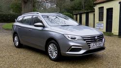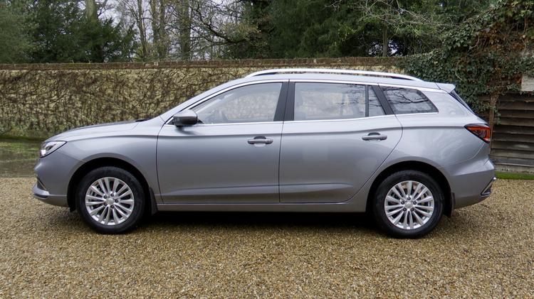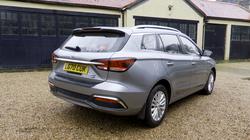The exterior styling, which was unchanged with this 'Long Range' model, is restrained and conservative and not particularly suggestive of a budget brand. In profile, a crisp shoulder line runs above the door handles, with lower creases that give the flanks some shape. A set of 16-inch 'Meteor' alloy wheels were standard and silver roof rails decorate the plusher 'Exclusive' version. Whichever variant you opt for, you certainly get a lot of metal for the money. This MG5 is 4.54m long, which, to give you some perspective, is about 100mm shorter than a Ford Focus Estate, though this MG's 2.6m wheelbase is only 43mm shorter than that Ford's. This Chinese contender is 1.82m wide and 1.54m tall too. Up-front, the specialist motoring press has been a bit disparaging about the cabin ambiance, but it's actually not that far off volume brand standards, without feeling especially plush - even in the top 'Exclusive'-spec variant with its white-stitched leatherette upholstery. MG tried to meet the current prevailing class standard for infotainment too with a 8-inch centre monitor. It'll usually display in a split screen format, with audio, navigation and Apple CarPlay options easily accessible. Anything else you might need to know can be found in the instrument binnacle, which combines a central 7-inch screen with (rather curiously on an electric vehicle) outer analogue dials, the left one for speed and the right being an EV Power Meter. When the ignition is fired, the outer edges of both analogue dials are completed by the edges of the centre screen, with a green battery % graphic on the left and a blue voltage display on the right. On the back seat, there's ample headroom and legroom, even for taller occupants. And you could fit three adults in without much trouble, thanks to the relative absence of a central transmission tunnel. Finally, this is an estate car, so you'll want to know about boot space, which is rated at 578-litres with the rear seats in place - around the same as a Ford Focus Estate.