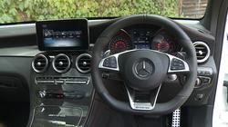 Get one of these bearing down in the fast lane upon you and you'd scuttle over pretty quickly. Whether you choose your GLC 63 in this SUV guise or in its alternative Coupe form, it's a mean-looking beast. The lesser V6-engined Mercedes-AMG 43 4MATIC model could easily be mistaken for an ordinary GLC with sporty 'AMG Line' trim, but from a glance at this V8 variant, you know you're dealing with a different thing entirely. The wider 'jet wing'-inspired front apron with its huge lower corner finned cut-outs is one component in this change of demeanour, but the main thing that enhances this '63' model's added status is a distinctive styling feature once reserved for the AMG GT sportscar - the 'Panamerica' front grille. And inside up-front? Well if you're wavering between this car and Affalterbach's more conventional C 63 model, then this is where the GLC V8 will probably sell itself to you. You know of course that this SUV's high-set stance will put it at a disadvantage to an ordinary performance saloon or estate when it comes to weight transfer and cornering agility, but somehow, it's hard to resist the allure of such a commanding driving position. The 'S' variant is differentiated by its grippy flat-bottomed AMG Performance steering wheel and AMG Performance sports seats, both of which feature DTM-style 'DINAMICA' microfibre trim. And in the back? Well if you've been persuaded to buy one of these in preference to the C 63 Estate model that the magazine experts will recommend you choose instead, it's here that that decision will pay off. The GLC 63 has 33mm more length in its wheelbase than one of those would offer and nearly all of that has been used for the benefit of rear folk who as a result enjoy significantly improved room for their legs and knees. Let's finish by taking a look at luggage space, accessed via the standard electrically-operated tailgate. There's 550-litres of space on offer. That's 25-litres more than you'd get in an Alfa Romeo Stelvio Quadrifoglio and 50-litres more than you'd find in a Porsche Macan Turbo. The GLC Coupe body style gives you a 500-litre space.