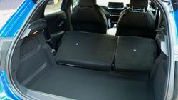 The all-electric e-208 was distinguished from what Peugeot calls 'thermic'-powered models by the adoption of body colouring for the front grille and a more unusual 'Dichroic' finish for the lion badge that appears to change colour, depending on your viewing angle. Most versions of this model were ordered in either 'GT-Line' or top 'GT'-spec, these two top variants recognisable by 'diamond black' roof colouring and glossy black wheel arch flares, which streamline the body, making the wheel diameter of the 17-inch wheel rims appear larger. Inside, there's the usual 208 'i-Cockpit' driving position format that sees you viewing the instrument binnacle over the upper rim of a tiny steering wheel rather than conventionally through the wheel spokes. On all but the entry-level version of this model, you'll find that the concept was further developed with the addition of a clever 3D instrument binnacle display. More media technology sits to your left in the form of the usual centre-dash touchscreen, normally 7.0-inches in size but offered on top models in 10-inch form. The seats are reasonably comfortable, there's not much wrong with the ergonomics and there's a reasonable amount of cabin storage space. What about the rear? Well it's certainly more cramped than the supermini norm but it'll be fine for the children who'll most commonly travel back here. The curvature of the front seat backs is designed to improve knee room, there's a notably low centre transmission tunnel and there's lots of room to poke your feet beneath those front chairs. There's no compromise in boot space, which is 311-litres in size just like any other 208. It's quite a usable, squarically-sized space, with 674mm of length and 1,018mm of width between the wheel arches.