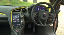 Street side presence: every supercar needs that: this one has it. The aluminium bodywork is shrink-wrapped around a carbon fibre structure to create a lean, sculpted shape that fuses visual drama, state-of-the-art technology and aerodynamic purity. Designer Rob Melville said it was inspired by the Great White Shark. We should talk about the dihedral doors; after all if you buy this car, your friends will. Here, they were not the same as the ones McLaren had offered before, the 80-degree opening angle being lower (to help in underground car parks) and requiring 155mm less space at the side than was the case with the lesser 570S model of this era, which increases accessibility when you're parked in tight spaces. As you'd expect, the central infotainment screen springs to life on entry, but the most eye-catching element is the Folding Driver Display which rotates into its fully open position as you take a seat. The primary hub for driver interaction though, is the Central Infotainment Screen, an 8-inch display that, thankfully, shares only its portrait format with the quirky 'IRIS' set-up the brand had previously used and been roundly criticised for - by us and others. A slim leather-stitched spur below this monitor incorporates the main controls for the 7-speed dual-clutch auto gearbox, while to the right of it lie the rotary controllers of the Active Dynamics Panel that'll be familiar to McLaren regulars. Perhaps the main thing though, that you'll carry away from a seat inside - and a short drive - is just how relatively easy it is to see out of this thing. Supercar owners used to claustrophobic rear cabin pillars or confining bulkheads will look around in amazement. The Monocage carbon fibre upper structure with its teardrop canopy allowed McLaren designers to specify strikingly slim roof pillars, while rearward vision is enhanced by transparent, glazed C-pillars and the way the V8 engine was mounted 145mm lower than it had been in the old 650S. Finally, boot space: in 720S models, this is all concentrated under the bonnet. This compartment is 150-litres in size, which of course is pretty small, but probably large enough to take a couple of airline-sized carry-on bags.