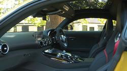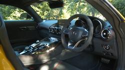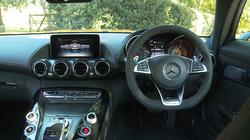 Any supercar must be an eye-catching thing. The old SLS certainly was and, like that car, this GT coupe model makes quite an impression at first glance. Yes, a little disappointingly, it lacks the exotic gullwing doors that characterised its classic predecessor, but that's intentional, all part of a drive not only to reduce weight, complexity and cost but also to give this machine its own distinct character. It's also shorter and narrower than that previous Mercedes-AMG design, with aesthetic aggression that was ramped up several more degrees. Get one of these in your mirrors and you'd move over. Quickly. Take a seat behind the wheel and the SLS underpinnings are betrayed by the way the designers tried to retain that car's huge over-sized central transmission tunnel, which came in a choice of chromed, high-gloss or carbon finishes. In a nod to the V8 engine up-front, it features eight 'AMG DRIVE UNIT' control buttons laid out in a V-formation. It's deliciously unnecessary to have as many as four jet engine-style chromed vents at the top of the centre stack, but it looks great and adds to the whole 'aviation'-style theme. Just above these sits an 8.4-inch 'COMMAND Online' infotainment screen that's far more cleanly integrated into the dash than it is on most other Mercedes models and features the usual sophisticated graphics that make those of every other rival system look dull and cheap. And out back? With the hatch raised, there's a similar sort of wide, shallow boot compartment to that you'd get in a rival Jaguar F-TYPE SVR. The space provided though, is significantly less - 350-litres, or 285-litres if you close the retractable load cover to keep your belongings out of sight. Still, that's more than you get in an Audi R8 and it's enough to take two golf bags lengthways or crossways.