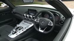 Any high performance sportscar must be an eye-catching thing. The old SLS Roadster certainly was and, like that car, this open-topped GT model makes quite an impression at first glance. It's shorter and narrower than that previous Mercedes-AMG design, with aesthetic aggression that's ramped up several more degrees. Get one of these in your mirrors and you'd move over - and quickly. We should talk about the fabric convertible roof - it's quite a piece of work. Available not only in black but also in red or beige, this triple-layer top operates via a button just above the windscreen, takes only 11 seconds to activate and can be raised or lowered at speeds of up to 31mph. The hood is supported by a lightweight structure using magnesium, steel and aluminium, which helps to keep the centre of gravity low. It folds cleanly in a compact Z-shape into the area behind the seats, the central roof section neatly doubling up as a tonneau cover for the roof compartment. Take a seat behind the wheel and the SLS underpinnings are betrayed by the way the designers have had to retain that car's huge over-sized central transmission tunnel, which comes in a choice of high-gloss or carbon fibre finishes. In a nod to the V8 engine up-front, this centre section features eight 'AMG DRIVE UNIT' control buttons laid out in a V-formation. It's deliciously unnecessary to have as many as four jet engine-style chromed vents at the top of the centre stack, but it looks great and adds to the whole 'aviation'-style theme. Just above these sits an 8.4-inch 'COMMAND Online' infotainment screen that's far more cleanly integrated into the dash than it is on most other Mercedes models and features the usual sophisticated graphics that make those of every other rival system look dull and cheap. Anything the infotainment display can't tell you will be covered off by the smaller colour screen that nestles between the two deeply-cowled dials offered by the instrument binnacle. And out back? Well impressively, the 350-litre capacity on offer is exactly the same as you'd get with the Coupe body style and isn't affected by the position of the roof.