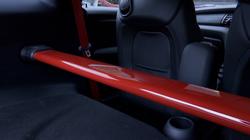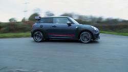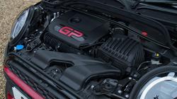 Nothing is subtle about this MINI - certainly not the way it looks. Has the brand ever produced anything with more radical racetrack presence? It's doubtful. The first thing you'll notice of course is the simply enormous GP-branded rear wing, with its subtle lip spoilers and a look apparently inspired by the boxy turbojet housings of the Concorde supersonic aircraft. More subtly altered is the rear valance within the rear bumper, which incorporates centrally-mounted twin tailpipes. At the front, the GP-branded grille has a red bar, there's a red-framed lower air intake and the slim bonnet vent and the headlamp bezels are framed in black. You get a deeper front bumper than the one on an ordinary JCW hatch, with bigger cooling ducts and a more pronounced lower splitter. At the side, you'll note the 10mm lower ride height; and the fact that this is a 3-door. In profile, the biggest change its incorporation of the much wider wheel arch extensions needed for this extreme variant's wider track. These extensions aren't the car's most stylish feature but they're apparently fashioned from the same carbon fibre used in construction of BMW's i3, they carry the car's individual build number and they house 8-inch wide 18-inch forged four-spoke lightweight rims with red GP centre badges. What else? Well the interplay between the narrowing window area and the rising shoulder line traces a wedge shape that gives the impression of acceleration even when the car is stationary. You get lower red striping on the doors. And the exterior paint finish - you have to have 'Racing Grey metallic' - alternates between light grey and blue-violet, creating a powerful sense of depth, while the roof and mirror caps are finished in a copper-coloured shade of 'Melting Silver'. Inside, it's all equally focused. There's two brilliantly supportive front sports bucket seats trimmed in dinamica and leather and fitted with red seat belts. They position you perfectly in front of the grippy three-spoke race-spec 'GP Walknappa' wheel which features a race-style 12 o'clock top marker and GP-branded steering wheel gearshift paddles manufactured using 3D printing. Otherwise, the cockpit's pretty similar to that of a standard JCW Hatch, apart from the adoption of a free-standing 'GP digital display' instrument cluster. Otherwise, it's not very much different to an ordinary JCW model, apart from a few minor trimming changes (carbon additions and GP-branded door entry strips and floor mats). There's also a bespoke build number on the fascia panel ahead of the front passenger, along with an anthracite headliner. The central infotainment screen (which has a special GP screen on start-up) is only 6.5-inches in size as standard, but most original owners upgraded to the optional 'GP Touring Pack', which gets you a larger 8.8-inch display, complete with Navigation and various MINI Connected services. It incorporates various vehicle functions too, including a 'Sport Display', showing power and torque outputs. Even the consumption displays are on a racetrack graphic. As usual with a MINI hatch, storage space is at a bit of a premium - the glovebox and door pockets are small. A compartment between the seats usefully incorporates a phone charger but it rather gets in the way of the lower infotainment controller, so you'll probably have it raised most of the time. There's a cup holder behind it. And two more cup holders are provided near a stowage tray at the base of the centre stack, near to a couple of USB ports and a 12v socket. As with the two previous generation MINI GP models, the rear bench here was chucked out in the interests of weight saving - as would be the case with a MINI race car. There's just a transverse brace behind the seats finished in 'Chilli Red'. It's actually there to stop luggage sliding forward, but if you want, you can tell your friends it's a roll cage-style structural element. Out back, the main part of the boot is just like an ordinary MINI Hatch 3-Door, which means it's quite deep but pretty small, this primary area being 211-litres in size. The advantage of having no rear seat means that you can also push items onto this higher ledge where that bench would normally go - towards that red bracing bar. You'll still need to pack pretty light though.