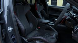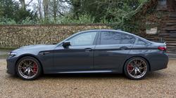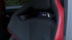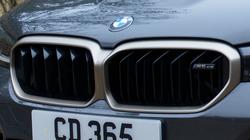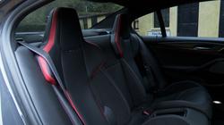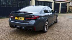 A range of little details marked this F90 M5 CS apart from its M5 Competition stablemate. The bonnet is made entirely from lightweight CFRP (CarbonFibre Reinforced Plastic). And enthusiasts will pick up that the kidney grille, with its CS badge, has a surround finished in Gold Bronze. There are yellow laser lights and front splitter is taken from the BMW M8, as are the exterior mirror caps. The M gills on the front wings get more Gold Bronze, a finish which also features on the 20-inch M forged Y-speed wheels. At the back, the rear spoiler on the boot lid and the rear diffuser are both also made from CFRP. There's another M5 CS badge, but the Bavarian cognescenti won't need that to identify this model, having clocked this top variant's bespoke sports exhaust system, with its Gold Bronze-accented quartet of stainless-steel tailpipes. Step inside and you'll find that the interior layout with its DTM-style red-edged M Carbon bucket-style seats is exclusive to the CS model. These chairs feature fine-grain Merino leather black upholstery with eye-catching contrasting panels and decorative stitching in Mugello Red, while the outline of the legendary Nurburgring circuit imprinted on the head restraints is a reminder of the car's sporting potential. The rim of the M Alcantara steering wheel is wrapped in the race-derived material from which it takes its name, while its centre-marker perforation with red background is another classic race car influence. The gearshift paddles are made from carbon fibre, the gearstick gets red trimming and the steering wheel spokes have Black Chrome trim. Elsewhere, Alcantara is also used for the headliner. In the rear, you get exclusive individual seats, which won't please family enthusiasts, but go with the whole performance vibe. A CS badge fills the centre space where the useful middle seat would usually be. There's a lower compartment between the chairs. As usual in an M5, there's a fraction less leg and knee space than you'd get in a rival Mercedes-AMG E 63 or Audi RS 6, but the differences aren't very great and this BMW betters these two rivals when it comes to ceiling height. The luggage area is 530-litres in size. Loading up a couple of large suitcases is easy with little intrusion from the wheel arches or suspension and there are four securing hooks to tie down loads safely. Unlike in an ordinary M5, you can't push forward the rear seat backs to extend the cargo area.