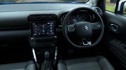 This car feels like it's up for a bit of fun, doesn't it, it's styling all jaunty bulges, contrasting colours and tonka toy-like looks. Shy and retiring folk won't see the point, but the fashionistas should love it. This improved version of the MK1 design looks a bit more purposeful than its predecessor, but it's pitched at the same segment, sized halfway between the supermini and family hatch sectors, an SUV sweet-spot that back in 2021 every mainstream brand was fighting increasingly hard to compete in. Inside, as part of the 2021 update, this C3 Aircross gained a larger 9-inch centre screen and, with the top-spec trim level that most customers wanted, a pair of unusual over-stuffed front 'Advanced Comfort' seats. As with the original model, what you ultimately get with this car depends quite a lot on whether you've been able to stretch up to one of the pricier trim levels and therefore open up access to one of the three nicer interior design packs. But even without extra trimming tinsel, there are plenty of unique design touches to be found around a cabin - like the quirky little upright air vents, the retro-style instrument dial graphics, a curiously stylised handbrake lever, a squarical flat-bottomed steering wheel and even an indented 'reverse Airbump' theme on the door cards. There's a reasonable amount of cabin storage space too - and decent build quality from the Spanish factory. Go for a top 'Shine Plus' variant and you get the flexibility of a sliding rear bench that features a 60:40-split and moves back and forth over a 150mm range. It's a great feature to have on a car of this class, but it's really annoying that you can't have it on more affordable versions of this model. The seat back reclines too, for greater comfort on longer journeys. Another feature of note that requires a plushly-specced variant is the panoramic glass roof, which opens, has a powered blind and, occupying a glazed area of nearly 1-metre in length, was supposed to be the largest in the segment. Last but not least, let's consider the boot. Raise the rear hatch when the back seat is set for maximum legroom and there's 410-litres of capacity on offer. Push forward the entire rear seat and you'll reveal an (almost) flat loading floor with as much as 1,289-litres of total fresh air if you load to the roof.