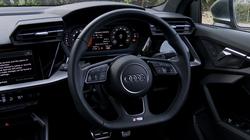 There's a choice of two S3 body styles - the 5-door Sportback variant and the alternative 4-door Saloon. Compared to its predecessor, the MK4 S3 Sportback is 3cms longer and wider than before; the Saloon version, if you're interested, is 4cms longer and 2cms wider. The front, with its silver-trimmed corner air inlets, is dominated by the usual Audi Singleframe grille with its large rhombus-patterned grille, this adornment flanked by LED headlights with LED daytime running lights. In profile, aluminium door mirror surrounds confirm membership of Audi's S Series and the silhouette is dominated by the way that the pronounced shoulder line extends from the headlights to the rear lights, below which the body curves inwards. At the rear, the larger long roof-edge spoiler makes the flatter rear screen seem lower. And width is also emphasised by the large lower diffuser with its four trademark exhaust tailpipes. Inside, model-specific touches include a smart red-trimmed start button and S badging on the perforated leather trimmed steering wheel. But what you'll notice just as much is something common to all MK4 A3s - what back in 2020 Audi called a 'new level' of digital technology, though here it was incorporated much less self-consciously than in a comparable fast Golf. In true Audi style, black panel tech dominates, with hidden screens you don't notice until you fire the engine. At which point the 10.1-inch HMI centre screen and the 10.25-inch Virtual Cockpit instrument binnacle display both spring into life. In the rear, as with most cars in this segment, it's not particularly spacious. Still, a pair of modestly-proportioned adults would enjoy reasonable comfort, helped by a small 3mm increase in elbow room for the MK4 design. What's on offer here is directly comparable to what you'd get in either of this model's two closest premium-badged segment rivals, the BMW M135i and the Mercedes-AMG A 35. Boot space is rated at 370-litres for the saloon or 325-litres for the Sportback variant. The quattro 4WD system robs you of a little room here, that total being 55-litres less than you'd get in a front driven A3 Sportback. Push the rear bench fully flat and you'll have up to 1,145-litres of room to play with.