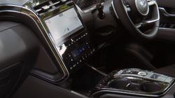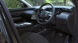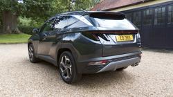 The MK4 version of this Hyundai mid-sized SUV is all about sharp angles, dynamic proportions and rich surfacing, the kind of thing you'll notice from a front end that really is guaranteed to get the neighbours taking a second glance over the fence. When the lights are off, the nose section appears to be covered in dark, geometric patterns - Hyundai calls these 'parametric jewels'. Some of them are made up of so-called 'parametric hidden lights', the daytime running lamps that cause parts of the grille to spring into life in jewel-like shapes with clever 'half-mirror' technology and twinkling LED illumination when the ignition is fired. It's all rather effective. More artful design features at the rear, where the brand badge arches into the tailgate glass and LED tail lamps feature an angled ribbed design with more parametric hidden lights. The profile perspective, its cab forward stance and swept-back shaping with black roof rails disguising a 20mm increase in length for this 'NX4'-series model, isn't conventional either. In fact, we're not sure we've ever seen a silhouette with quite as much of a riot of chiselled edging and conflicting creases as this one. With revolution prioritised over evolution outside, it would be a big disappointment to find a return to conventionality within. Fortunately, that's not what you're served up behind the wheel, where Hyundai promised us what it called 'an advanced and fully customisable digital experience'. In this case, what that gets you is a fully digital, configurable dual cockpit screen design that features a 10.25-inch instrument cluster display paired with a centre stack AVN touchscreen of the same size. It's all a massive improvement from the drab interior of the previous generation model and is complemented by a high centre console flowing into a centre stack that for the first time on a Hyundai was fully touchscreen-orientated. There's certainly lots to adjust to here. The usual cowl over the instrument cluster's missing; and for those not wanting a stick shift, Hyundai dispensed with an auto gearstick, favouring big Fisher Price-style silver centre console buttons instead. There's a curiously styled four-spoke steering wheel with unusual lower silver detailing. And, providing you avoid entry-level trim, there's no ignition key either; just a rather hidden silver fascia start button. Whether or not you really like all of this depends on how you feel about modern technology but whatever your perspective on that, you can't deny that the Tucson has much more of a premium feel in this form, quality materials and soft-touch surfacing everywhere you look. All-round visibility is a little compromised, but the seats are comfortable and there's plenty of cabin storage. The back seat has a slightly more spacious, airier feel than before and that's backed up by a measurement suggesting that passengers back here will enjoy another 26mm of legroom, with lots of space to slide your feet beneath the front seats. There's near-class-leading headroom too, with both attributes unaffected should you opt for either a full-Hybrid or a Plug-in drivetrain. We'll finish by considering the boot, which unless you've splashed out on a top trim level you'll have to raise yourself. The space you'll get within will depend a lot on the powertrain you've chosen for your Tucson. The Plug-in Hybrid variant offers only 558-litres of space - which is the sort of thing you might expect given the need for the under-floor battery system - but it's disappointing to find that the MHEV mild hybrid model most Tucson customers are likely to choose (which has a tiny battery) is almost as compromised, with 577-litres of space. For some reason, the full-Hybrid HEV variant manages to be a lot better in this respect, offering 616-litres - nearly as much as the completely un-electrified conventionally-engined base derivative (where it's 620-litres). Handy levers positioned just inside the tailgate opening allow you to retract the rear bench completely, which folds almost flat and releases up to 1,737-litres of space in the Plug-in model; it's 1,756-litres in the mild hybrid version, 1,795-litres in the Hybrid and 1,799-litres with the conventionally-engined model.