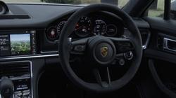 Shut your eyes, picture what a four-door Porsche 911 sports coupe might be like and you won't be a million miles away from the reality of this G2-era Panamera. The old pre-2017 first generation '970'-series G1 version of this car set out to deliver on that brief too, but never quite managed it, sleek from some angles but distinctly awkward from others. Everyone seems to be agreed that this '971'-era second generation model was a much more stylish piece of work, thanks to its longer wheelbase and lowered rear roofline. So much so that Porsche wasn't minded to make too many visual changes as part of this mid-term facelift. As before, there was a standard body shape, the alternative to which was the almost identically-sized 'Sport Turismo' 'shooting brake' estate. Move to the front and if you owned the original version of this MK2 model, you might pick up on some of the detail changes that Porsche made to this updated model. All variants got the previously optional 'Sport Design' front end styling pack, which delivered more striking air intake grilles, large side cooling openings and a single-bar front light module. Move to the rear and the sportscar cues continue. The restyled three-dimensional LED rear lamp clusters that were added as part of the update feature darkened lenses with the GTS variant and on all Panameras are connected by a narrow illuminated strip, also re-styled and there to help create a unique night time signature. At the wheel of this Porsche sportscar that also happens to be a super-luxury saloon you appreciate the implications of this curious combination almost immediately. The low-slung seating layout with its perfect positioning and almost infinite adjustability really is quite similar to a 911's, while the tall centre console that runs down the middle of the cabin hems you comfortably in, fighter aircraft cockpit-style. Virtually nothing really changed with this facelifted version of the MK2 model; there was a re-designed multi-function sports steering wheel - that was about it. As ever in a Panamera, the tall centre console that runs down the middle of the cabin hems you comfortably in, fighter aircraft cockpit-style. Around the gearstick there's a shiny black panel that comes to life with touch-sensitive controls once you fire the ignition. And just above lies the other defining feature of this cabin, the huge 12.3-inch colour touchscreen controlling the standard 'Porsche Communication Management' infotainment system. More screens are found in the instrument binnacle either side of the prominent rev counter gauge. All of it's configurable to your personal preferences as part of one of the most sophisticated cabins you'll find anywhere in this segment from this era. And in the back? Well settle in here and immediately, you feel a bit more special that you would in rival models thanks to two individual sports seats that replace the usual bench. Original buyers could also add in an optional small '2+1' centre rear seat that could be used for a child. The main outer seats aren't the compromised pews you'd expect to find in something professing to be a four-door sportscar, instead offering standards of leg and kneeroom not really that far off the kind of thing you'd get in a similarly-priced Mercedes S-Class or a BMW 7 Series saloon. As for luggage space, well if you approached this car expecting that its hatchback configuration would mean a class-leadingly large boot, then you might be a touch disappointed. Click the keyfob button for the standard power-operated tailgate and you'll find that most models offer a shallow-shaped 495-litre capacity (though it's less with the PHEVs). With everything flat, a massive 1,334-litres of space is available in most standard variants. Go for the 'Sport Turismo' estate model and a slightly larger 515-litre boot can be converted into a 1,384-litre total loading area.