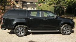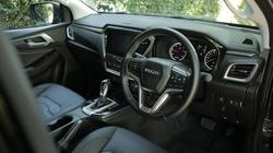 All the visual changes which set this 2023-era facelifted GR-series D-Max apart from the original '21-era version can be found at the front, where tweaks were made to the two-tier front grille. As part of these, the Isuzu name was moved to sit above the top bar, rather than being embedded within it. And the lower bar lost the acute angles which had previously characterised its lower corners. The black grille slats below were also revised. As before, As before, most customers wanted the Double Cab body style - which was conditional for customers wanting the top 'V-Cross' 'Adventure Range' model - but Isuzu also continued to offer an 'Extended Cab' variant alongside it in the more affordable mid-level 'All-Purpose Range' (think 'back-to-front' rear doors and occasional rear seats). In the base 'Business Range', that 'Extended Cab' variant featured along with the traditional Single Cab body shape with its much longer cargo bay. As before, side steps and 18-inch alloy wheels featured on most models - though the rims were redesigned for the plusher 'All-Purpose' and 'Adventure' versions, getting a two-tone finish on the mid-range 'DL40' variant and were painted dark grey on the top 'V-Cross' derivative. Inside, there's the high-set driving position that's typical of a pick-up in this class and there's a 4.2-inch display flanking analogue dials in the redesigned instrument cluster. For plusher DL40 and V-Cross models, the centre stack gained a modern touchscreen which will be either 7 or 9-inches in size and includes 'Apple CarPlay'/'Android Auto' smartphone-mirroring. All-round visibility isn't bad for a pick-up, there's plenty of cabin storage and as part of this update, the seats became far more supportive. At the back in the Double cab, there's slightly more passenger comfort than is provided by some rival models, thanks to this 'RG'-series model's relatively generous wheelbase length, which was used to the benefit of rear-seated folk. As a result, there's a little more leg room than you might expect and decent room for head and shoulders. It's also noticeable that the seat's back rest is a little less vertically inclined than with some rivals, which gives noticeably greater comfort on longer journeys. One nice touch is the way that twin storage areas under the 60:40-split rear seat base enable you to more flexibly use the rear passenger space for packages, should you so wish. You lift a little flap on each side. Plus you can also pull down the rear seat backrest, preventing the upholstery from getting grubby when you're carrying pets or packages. What about the load bay area? Well if you've used a D-Max in the past, the first thing you'll notice on most versions of the 'RG' design is that Isuzu includes a damper to the tailgate, so it doesn't fall open as soon as you release it. The thing is still pretty heavy to lift though. A big step is moulded into the bumper so that reaching in is a little easier; and 30mm of extra depth was added to the cargo bay compared with the previous 'RT' model - though the resulting 465mm depth figure was still comfortably the least accommodating in the class from this period. The 1,495mm load bay length of the Double Cab model was also bettered in period by the Toyota Hilux (1,525mm), the long wheelbase SsangYong Musso (1,600mm) and the Ford Ranger (1,613mm). Obviously, you'll gain more load bay length with the alternative two D-Max body shapes; the Extended Cab offers 1,805mm and the Single Cab has 2,315mm. As with this Isuzu's three key segment rivals, there's enough load bay width (1,530mm) to take a standard UK-sized pallet lengthways between the wheel arch intrusions. And this area meets the usual pick-up class qualification that it should be able to take over a tonne of weight; with the top Double Cab auto model, the figure is up to 1,070kgs; you'll be able to take a fraction more if you choose a manual gearbox or an Extended Cab model - and the figure for the Single Cab is up at 1,205kgs. In our 'Driving Experience' section, we briefed you on this D-Max's class-competitive 3.5-tonned braked towing capacity; but noted the reduction that would be necessary to that figure were the load bay to be fully weighted-up (an issue also with the Ranger and the Hilux).