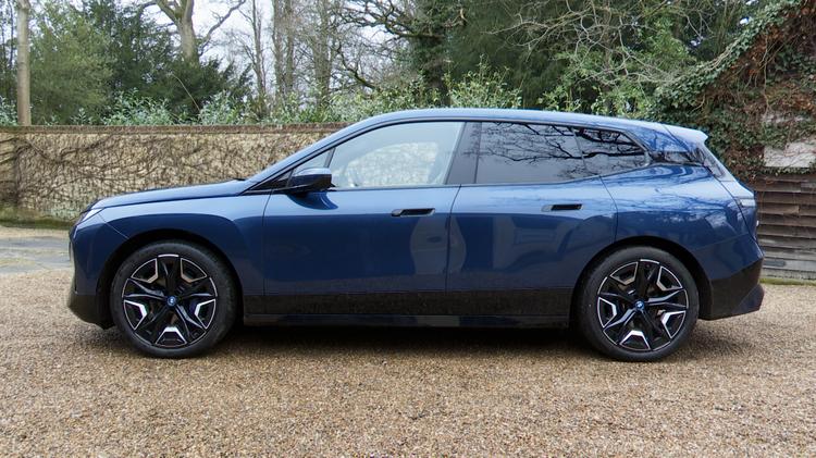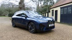 By and large, BMW doesn't do 'beautiful', but it is very much a specialist in 'striking' - and this iX is certainly that. It's certainly big, just under 5-metres long, around 2-metres wide and a fraction under 1.7-metres high - about the same size, in other words, as the company's X5, which BMW claims shares nothing with this car. Like the old i3, there are carbonfibre cores for the windscreen pillars and cant rails - and aluminium honeycomb door sills too, plus in this case carbonfibre-reinforced plastic for the roof, all of it intended to allow this car to tip the scales somewhere near the class norm point of around 2.2-tonnes. Inevitably though, the iX gets nowhere near that benchmark; think nearly 2.6-tonnes, 650kgs of which is accounted for by the lithium-ion battery pack. One day, historians will be shocked that EVs were ever like this. Shock is exactly what unsuspecting fast lane dawdlers will feel when they suddenly find this car's huge kidney grille bearing down upon them at warp speed. And in profile? Well the shape may appear a touch ungainly but it's undeniably aerodynamic, with a sleek drag co-efficient of just 0.25Cd. There's a wraparound look to the tailgate, with thin horizontal rear LED lamps stretching towards the central BMW roundel in an unnecessary attempt to emphasise this car's prodigious width. According to its maker, this car was designed 'from the inside out', the focus being on what the Bavarian brand calls its 'Lighthouse' interior. It certainly light, especially with the optional dimmable Sky Lounge panoramic roof fitted. There's so much to take in. The curious hexagon-shaped steering wheel is difficult to ignore; your main point of control is a rocker switch for gear selection; and even in a screen-dominated era, the 'Live Cockpit Professional' set-up's gently curving slither-like joined 'Curved Display' is unusual, apparently floating above the angular dash and incorporating a 12.3-inch instrument set-up and a 14.9-inch central infotainment screen. Strange trimming combinations assault the eyes, there's a button rather than a handle to open the door and you sit almost Range Rover-high, though here of course the raised floor is there for quite a different reason, the unusual quilted leather seats with their plant-based upholstery and integral head restraints set upon it. The two-part centre console's a bit different, designed, BMW says, in the style of 'a high quality piece of furniture' and free-standing, so there's a lovely open footwell right across the front of the car. Despite the fact that there's over 3 metres between the axles in an iX, BMW elected not to make this a seven-seater, so if you're shopping for a car of this sort from this era, you'll need to choose a Tesla Model X in this class if that's what you need. Still, that decision ought to benefit back seat room and sure enough, it feels properly spacious in the back, aided by the rear quarterlight windows and the kind of completely flat floor that you'd have to do without in rival Porsche Taycan or Audi e-tron GT models, where the centre transmission tunnel, banished here, is excessively high. Because the floor isn't inset with little so-called 'foot garages' - the insets into the lower EV floorplan that you'd get with the rival VW Group luxury EVs just mentioned - your feet are positioned a little higher, but there's plenty of knee space and, unlike with some rivals, original owners of this early model didn't have to pay extra for rear seat climate controls, which sit beneath the twin central vents. Given nearly 5-metres of body length, you'd hope for plenty of luggage capacity here. Actually, the powered tailgate with its two-piece parcel shelf rises to reveal a 500-litre space: not bad, might be your initial thought, until you check rival stats and realise that this is pretty much the same as you'd get from a Jaguar I-PACE or a Mercedes EQC from this era - and they're both significantly smaller SUVs. If you need more space, then activating the cargo sidewall catches flattens the main part of the rear bench - there are also little buttons just inside the rear doors that do the same thing. And that frees up 1,750-litres of space.