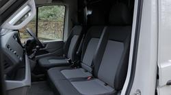 There are no mechanical changes as part of this update. We hadn't expected that for the combustion range but we had expected that Volkswagen might try and introduce the kind of full-EV drivetrain that just about every other contender in this segment now offers. Wolfsburg's been developing an EV Crafter for years, but there's no sign of it being production-ready just yet. Once you settle into driving a large van like this, it's a very commanding experience. You sit high up in quite a car-like position thanks to the upright steering wheel, enjoying a supportive seat that can be equipped with an armrest to prop a weary elbow on over longer trips. On the move, this MK2 Crafter has always felt a little more car-like thanks to its electromechanical steering system and its optional front wheel drive configuration - both things you couldn't have in the pre-2017-era MK1 model. Rear wheel drive and 4MOTION 4WD are still offered too and your selection of drive layout could well impact your choice between the various versions of the 2.0 TDI diesel engine on offer. There are three, with 140, 163 or 177PS outputs available mated to either 6-speed manual or 8-speed DSG auto transmission. Let's get to the drivetrain detail. The volume CR30 model is available exclusively with front-wheel drive, a 140PS 2.0-litre TDI engine and six-speed manual gearbox. The CR35 version adds the option of a 177PS 2.0-litre TDI unit with either front-wheel drive or auto-only 4MOTION four-wheel drive. The CR35 Crafter can also be ordered with 163PS 2.0-litre TDI rear-wheel driven power, which is the exclusive engine and drivetrain layout of the heaviest 5-tonne CR50 version. This TDI powerplant has always been quite a refined thing and to some extent, that's still the case, providing you don't stress the thing too much. In everyday use, the engine goes about its business with little more than a muted hum. Progress to the upper reaches of the rev range though and this diesel sounds far less comfortable. Indeed at higher motorway speeds, engine noise is more noticeable than intrusions from tyres or the wind. Ride quality remains unbettered in the class, making this an excellent long-journeying companion.