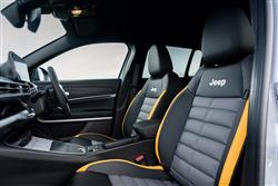 Though the Avenger was originally envisaged as an EV product, the powertrain of this 4xe version is resolutely combustion-based. It does feature a 48V mild hybrid electrical system, but even that's primarily there to improve traction and torque for off-road performance. The engine in question is the usual Stellantis-sourced 1.2-litre three cylinder turbo petrol 134bhp unit, driven through a 6-speed dual clutch auto gearbox. Here though, it features a pair of 28bhp electric motors, one on each axle. The resulting AWD system powers the 4xe to 62mph in 9.5s and on to 120mph. Jeep calls this car's AWD system 'smart', referring to the fact that power only goes to all four wheels at speeds of under 19mph. Between 19 and 56mph, the rear axle motor only cuts in when tractional needs require it. Above 56mph, the car is always front-driven. For off-roading, there's on-demand torque distribution with a front-to-rear split of up to 50:50. And there's a 'Selec-Terrain' system with 'Auto', 'Snow', 'Sand/Mud' and 'Sport' drive modes, which offer stability settings and power distribution according to terrain. The Avenger 4xe can traverse slopes of up to 40% - and 20% even without front axle grip. There are 22-degree approach, 21-degree breakover and 35-degree departure angles. Multi-link rear suspension allows greater rear axle articulation. And, thanks to a 10mm ride height increase (to 210mm), water up to 400mm deep can be forded.