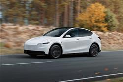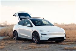 One of the things on Tesla's to-do list with this Model Y's 'Project Juniper' update was to improve ride quality, something that, like others, we criticised about it back in our original test of 2022. Well this enhanced design is still pretty firm, but it's not longer quite as unsettled over poorer surfaces as the original car was. That earlier 'Y' model's refinement also needed looking at, the original version more afflicted with wind noise and tyre roar than it ought to have been. And again, some useful improvements have been made, primarily with new sound-dampening materials and the introduction of acoustic glazing, which Tesla reckons has reduced road noise by 22%, impact noise by 20% and wind noise by 20%. Subjectively, the improvement doesn't feel quite as great as that - journeying quietness still isn't anything like class-leading - but it does at least now match the segment standard. Not all the changes have worked. We weren't that enamoured with the original car's rather lifeless steering and, to try and improve things, Tesla's slowed the rack down from 2 to 2.4 turns lock-to-lock. But it still remains somewhat remote in feel and rather needlessly over-sensitive, whichever of the three provided helm settings you choose ('Light', 'Standard' or 'Heavy'). The drivetrains are much as before, but the EV range figures they generate are usefully enhanced thanks to the improved aerodynamics. The base Standard Range version, which uses a 279bhp rear-mounted motor, has a 63kWh LFP battery that now takes you 314 miles between charges. Most will want the mid-level Long Range Rear-Wheel Drive variant, which gets a gutsier 308bhp rear axle motor to compensate for a larger 83kWh NMC battery capable of taking the car up to 387 miles between charges. The same larger battery also features in the two dual motor derivatives, the Long Range All-Wheel Drive version we tried, which has a combined output of 375bhp; and the top Performance variant, which offers 365bhp and a bespoke high speed drivetrain. Obviously, there's extra weight with the dual motor format, which blunts range a bit; for the ordinary Long Range All-Wheel Drive model, it's quoted at up to 390 miles on 19-inch wheels (327 miles on 20-inch rims). As before, all variants are quite rapid. Both the single motor versions make 60mph in about five and a half seconds, a stat that the standard All-Wheel Drive model improves to 4.1s on the way to the 125mph top speed that all mainstream Model Ys share. The top Performance version manages 0-60mph in 3.3s en route to 155mph and offers 360 miles of range. All of these stats assume you select the faster of the two provided 'Acceleration' modes - 'Sport' (the other is 'Chill'). Belatedly, Tesla's also introduced brake regen settings for our market (branded here as 'Deceleration' modes). Though there are only two ('Reduced' and 'Standard') and they have to be accessed via fiddly centre screen menus, they work well via a brake-by-wire system and give good pedal feel. The other drive change you'll immediately notice is that there's now no gear selection stalk, that functionality having now been moved to the swipe option on the right side of the centre screen you get with other Teslas. Initially, you might find this awkward to use, but you'll get used to it and the system automatically selects backwards and forwards motion when you're manoeuvring at low speeds, which is useful.