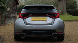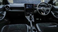 Quite a lot's been done to the engineering of this improved GR Yaris. Including an evolution of the turbocharged three-cylinder engine to deliver even more power and torque. And the introduction of an optional brand-new eight-speed Gazoo Racing Direct Automatic Transmission, engineered for competition-fast gear changes. The 6-speed 'IMT' 'Intelligent Manual Transmission' stick shift though, will still be the choice of enthusiasts. Maximum power and torque figures have risen to from 257 to 276bhp and 390Nm. And the bespoke GR Yaris chassis has been further strengthened. Plus the suspension has also been adjusted for greater handling control and robust performance under high loads, with revised spring rates and a strengthened front shock absorber assembly. As previously, the regular Yaris model's basic torsion beam rear suspension is replaced by a more sophisticated double wishbone set-up. As before, the GR Yaris is a model engineered through participation in rallying. A car very much in the mould performance classics of the past like Subaru's Impreza WRX and the Mitsubishi Evo. The car continues to use Toyota's GR-FOUR electronically controlled, permanent all-wheel drive system. This features a multi-plate clutch delivering power to all four wheels via three pre-set torque distribution levels; 'Normal' has a 60:40-split front-to-rear; 'Sport' pushes nearly all the power to the back 30:70; and 'Track' has an equal 50:50-split. There are big brakes too - 356mm grooved front brake discs featuring 4-pot calipers. And a set of sticky tyres too. The 62mph sprint is about half a second faster than before (think around 5.1s) and the top speed is around 145mph.