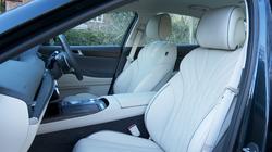 The G80 offers a 304PS 2.5-litre four cylinder turbo petrol unit with either rear wheel drive or AWD. Both variants are mated to an 8-speed automatic gearbox. Genesis has developed a 365hp all-electric version too, which gets an e-AWD system and can go up to 323 miles on a single change of its 87.2kWh battery. The four cylinder 2.2-litre 210PS diesel unit this car launched with is no longer offered. The EV model's pretty silent, but even if you stick with combustion power we tried, you can expect exceptional levels of drive refinement, aided by special noise cancelling technology, along with acoustic-muffling side glass. And though this is no sports saloon, it's not slow, even the four cylinder diesel managing 62mph in 6.0s; you can trim two seconds off that time if you go for the 2.5-litre petrol variant. It's just 4.9s for the electrified model, which uses a 185PS motor on each axle. To replicate those figures in the petrol model, you'll need to have selected the most urgent of the three provided drive modes - 'Sport'; the other two are 'Eco' and 'Comfort', the latter best of course for experiencing the best that the standard Electronic Control Suspension system has to offer. Its adaptive damping effect is aided by a camera that monitors the road surface and adjusts the suspension to suit the tarmac tears and pot holes you're about to pass over. You expect this car to be something of a luxury wafter and, sure enough, there's the rather light and woolly steering that tends to characterise this type of big saloon. Once we got this G80 to a few secondary roads though, we found that it actually handles better than we'd expected, though it's a pity that you can't have the e-LSD electronic limited slip differential that's available on the GV80 SUV model.
