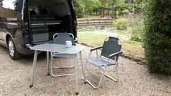 Staycations. You can't beat them can you? If you're of that mind set, Volkswagen wants you to consider this, the Caddy California. 'California' is the Wolfsburg maker's designation for 'motorhome'. Once, it just designated a camper version of the Transporter van. Then in 2020, a bigger Grand California model based on the larger Crafter LCV was introduced. And a year later, the Caddy van got a motorhome variant too. This one. Given that the Caddy is a commercial vehicle with roughly the dimensions of a Golf, you might think that what it could offer to motorhome folk would be fairly limited. But this is no ordinary Caddy, converted to incorporate a double bed, a mini kitchen and a chair and table package - all have been squeezed in. Basically, there's the convenience of a car for weekdays and the versatility of tent for the weekends. If that sounds appealing, read on.