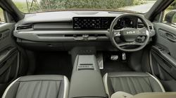 It doesn't seem likely that a family seven-seat SUV that looks like this will accelerate to 62mph in just 5.3s, but that's what the twin motor AWD 378bhp EV9 variant that most customers will choose manages. If, understandably, you can't see why a huge family wagon like this needs to go that fast, then Kia will offer you a base spec single motor rear-driven 'Air' version with 200bhp, which is considerably more sedate, making 62mph in 9.4s. That tops out at 114mph (10mph less than this Twin Motor EV9) but uses same big 99.8kWh long range battery, which takes the car 349 miles in 'Air' form - or 313 miles in the AWD model. The flagship version is the GT, which uses the same big battery but mates it to a more potent 515bhp drivetrain and can go up to 280 miles on a charge. Predictably, like any car of this kind, any EV9 is a big thing to manoeuvre about, especially around town and on narrow country roads. Still, at least there's less body roll than the slab-sided looks lead you to expect, helped by the low-down central siting of the enormous 566kg battery pack beneath the floor - positioning that considerably restricts any pretensions this Kia might have otherwise had towards off-road prowess. Steering feel is accurate but quite lifeless, with feedback one of the parameters you can control via the various drive modes - 'Eco', 'Normal' and 'Sport', plus a configurable 'MyMode' setting. Because there's no adaptive damping, these modes can't affect ride quality but Kia does provide standard self-levelling rear dampers. There are also six brake regeneration settings, which can be operated by the steering wheel paddle shifters. Impressively, the EV9 can tow 2,500kgs (as much as a Range Rover Velar); can be had with Level 3 autonomous drive technology; and can be parked remotely from its key fob.