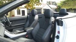 Translating a concept car into a production reality can be fraught with pitfalls and problems - which is why it took Land Rover four years to get this model into the showrooms, following its initial showing at the Paris Motor Show in 2012. You can imagine the head-scratching that must have gone on amongst the engineers. For a start, there would have been the usual issue that affects any cabrio design, that of maintaining torsional rigidity without a roof, a crucial consideration here given the need to retain in this variant the Evoque's trademark sharp handling. On top of that, convertible models aren't usually designed to pitch themselves at extreme angles, yet to maintain a Land Rover's standard of off road prowess, this one needed to be able to tilt to up to 35-degrees, without upsetting the kind of electronic roll-over protection system that any modern open-topped car these days has to have. It's all been achieved though, thanks primarily to a very strong base structure that uses higher-strength steel in the door sills, added chassis bracings and larger-diameter anti-roll bars. Whatever the position of its top, the car has quite a purposeful stance that's embellished by nearly all the things that set any ordinary Evoque apart as a piece of pavement sculpture. Overall, it's a shape that works anywhere - on paper, in the showroom, on the Kings Road: wherever. Inside, you'll find that the at-the-wheel experience is very much as it would be in any other Evoque. Well, in any other very plush Evoque anyway. Befitting their premium status in the line-up, Convertible models come as standard with luxurious 'Oxford' ebony leather upholstery, electrically-adjustable heated seats and top touches like illuminated tread plates and 'Configurable Mood Lighting'. The other key difference over an ordinary Evoque relates to the infotainment system, the 8-inch 'InControl' centre-dash touchscreen you'd normally get replaced here by a wider, more sophisticated-looking standard-fit 10.2-inch 'InControl Touch Pro' set-up. And in the back? Well on the plus side, there's more head, shoulder and legroom than you'd get from a comparably-priced executive cabrio. Which would make it very comfortable in the back were it not for the fact that to accommodate the rear roof compartment, Land Rover had to position the backrests at quite a vertical angle. Go for a car whose original owner paid extra for the optional 'Ski Hatch' and you get a centre armrest. And the boot? Well we'd originally hoped that, in proper Range Rover style, this car would feature a fold-down boot lid you could sit on. Instead, there's the mild inconvenience of a lift-up one, though it can be operated by gesture control if you get a plush variant. Inside, instead of the 420-litre luggage area you'd get in an Evoque Coupe, capacity is limited to 251-litres. Still, at least the capacity doesn't alter with the position of the roof.