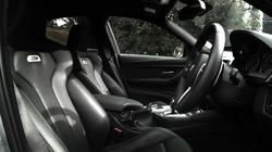 Is this how buyers will want their M-car to look? Probably. This 'F80' M3 sits 47mm higher off the ground than its M4 coupe stablemate but it's a difference you'd never appreciate from a casual glance. Instead, your first impressions are of a rather menacing thing, with real width to the design, especially when you view it from the front and take in the differences over an ordinary M Sport-trimmed 3 Series saloon: the wider flared wheel arches, the characteristic powerdome on the classic long bonnet and the way the deep front spoiler with its trio of air intakes sits purposefully beneath the trademark double-slat kidney grille. The unique aerodynamically-optimised twin-stalk side mirrors with their translucent LED indicators are bespoke too. It's just as good inside too, where you're greeted by an intuitively-designed cockpit, the centrepiece of which is the M leather steering wheel with its MDrive buttons for personalised vehicle set-up. On M Double Clutch Transmission models, you also get gearshift paddles with a cool metal finish. Through the stitched wheel, you glimpse a purposeful set of Motorsport-derived dials, with a segment beneath the rev counter showing the various suspension, throttle and steering set-up options you've chosen. We think the deep-set leather-trimmed heated, electrically-adjustable M seats are our favourite interior touch though, with their contoured sides, integrated headrests and pronounced raised elements.