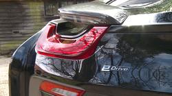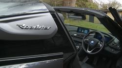 Even standing still, there's a sense of theatre about this i8, with a riot of complex surface treatments, contrasting colours, sharp creases and scalloped sills. For this Roadster version, BMW revised this car's distinctive dihedral doors to integrate frameless windows and better fit with the new roof arrangement. It's a fabric top that activates in 15 seconds at speeds of up to 31mph, folds in a Z-shape and stows vertically in the space where tiny back seats would be in the Coupe model, nestling between the rear bulkhead and the mid-rear-mounted combustion engine. As ever in an i8, the packaging is necessarily intricate, given the need to accommodate two gearboxes, three electric motors, a three cylinder turbo petrol engine, a 200kg bank of hi-tech lithium-ion batteries and all the associated technology of 4WD. It's all built into what the brand calls a 'LifeDrive' design approach, the name designating the two separate platform segments that combine to create the underpinnings of this car. First up is the aluminium 'Drive module' that shrouds the combustion engine and electric motor, the battery pack and various power electronics and chassis components. This connects to the separate 'Life module', the name BMW gives to this i8's CFRP 'carbon-fibre-reinforced plastic' passenger cell. Because of this, the designers of this Roadster model didn't need to build in additional structural reinforcement to make up for the removal of the roof. There are some additional panels in the rear suspension and the strengthened windscreen frame is fashioned out of reinforced CFRP, but that's about it. In the cabin, you'll find the styling as futuristic as it was outside, the curved, layered dash made up of overlapping three-dimensional segments and complemented by contrasting colours. Cocooned yet surprisingly roomy, the driver-focused cockpit envelopes you with slender blue-stitched leather sports seats, re-designed here as part of a package of mid-term i8 updates that also included the standard inclusion of these carbon fibre trimming panels and the addition of touchscreen functionality for the 8.8-inch iDrive infotainment monitor positioned at the top of the dash. Most arresting though, is the display you view through the grippy three-spoke wheel, a sci-fi-style screen, also 8.8-inches in size, which delivers range readings for fuel and battery power below two circular digital dials that change in colour depending on the driving mode you select. On to interior practicalities and, as is the sports car norm, cabin storage space is somewhat limited, not helped here by the fact that there are no door pockets. Obviously, the deletion of the Coupe model's rear seats doesn't help either, though to compensate, BMW provided 100-litres of storage capacity between the roof box and the seat backs, which is compartmentalised into three parts and is ideal for stuffing coats and soft bags into. Let's finish with a look at boot space. It's just as well that that extra space behind the seats was freed up because there isn't much room available in the boot - just 88-litres - around half the trunk space offered to buyers of the Coupe version.