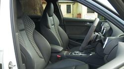 If you've got it, you shouldn't need to shout about it - or so Audi believes. Hence the subtlety of the changes made to Sportback and Saloon versions of this RS 3 in 2017 to differentiate them from their equally low-key S3 stablemates. As before, there was a choice of Sportback hatch or saloon body shapes. Either way, the major points of differentiation with this post-2016-era model lie at the front end where the three-dimensional black honeycomb grille lacks the bright aluminium cross-bars that feature on other A3 variants from this era and gets 'quattro' lettering along its lower edge. Underneath, a silver blade flows just above the lower splitter and turns up at either end into more purposeful-looking lower corner air intakes. Behind the wheel, it's all in the details. The flat-bottomed leather and alcantara-trimmed RS sport leather steering wheel with its contrast stitching is of course bespoke. So are the stainless steel pedals, the RS gear lever and the illuminated RS door sill trims. We really like the seats. They came in nappa leather-trimmed sports form as standard, but we'd want to find a car whose original owner had paid the extra for the brilliant winged, diamond-quilted Super Sports seats. They're anatomically-shaped and perfectly position you to view another standard cockpit highlight, the all-digital Audi 'Virtual Cockpit'. In the back, a six-footer can sit behind an equally lanky driver but it's a fairly snug fit and, as you'd expect from this class of car, three across the back only really works if the people concerned are of school-going age. The boot is 335-litres in size if you go for the Sportback variant. That's 5-litres less than you'd get in an equivalent S3 Sportback. Opting for the Saloon body style means you have to compromise quite a bit on cargo volume. Even though the trunk area is 170mm longer than that of the Sportback, the total capacity figure with that variant falls to 315-litres (down from 390-litres in a four-door S3).