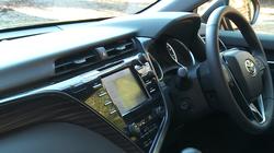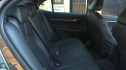 Come on - be honest; you expected this Camry to look rather bland. Plenty of this eighth generation model's predecessors certainly did. We'll be frank - so did we. Instead, what we're served up here is reasonably distinctive. It won't have the neighbours peering over the hedge to see what you've bought, but there's certainly an appealingly low-set look, aided by short overhangs and a wide, purposeful stance. Suffice it to say that if this car was Lexus-badged, you wouldn't do a double-take. This 'XV70'-series eighth generation Camry is a fraction larger than the Mondeo segment norm - compared to that Ford, it's actually 14mm longer, with 12mm more width. Of course, as usual. what's more important is the stuff you can't see, primarily the stiff, lightweight GA-K platform introduced with this eighth generation model, which was 30% more rigid than anything Toyota had previously used on this size of car. There's nothing very memorable about the cabin design on offer here, but you certainly get plenty of space to spread out. Leather upholstery is a given, as are heated and power-adjustable seats (this was a car designed for the American market after all), plus the chairs themselves are probably the most supportive of any we've tried in this segment for a car of this period - and brilliant for longer journeys. All-round visibility is excellent and there's also little to fault about the driving position, thanks to vast amounts of seat and steering wheel adjustment. Not so good is the infotainment provision. The 7-inch centre-dash screen is rather small and its graphics rather dated, though the selectable hybrid system 'Energy Monitor' is informative and a reversing camera is standard-fit. Some of the cabin trimming is rather dull, though that doesn't apply to the bizarre bronze-hued 'Tiger Eye' inlays that feature on the top 'Excel' model. Perhaps that's an American thing. Storage provision is pretty good, with a big stowage area between the seats and a spacious glovebox. And the rear seat? Well inside, it's as roomy and spacious as those exterior dimensions suggest this car would be. The fact that the exterior part of the roof curves downwards towards the rear of the car makes a slight difference to headroom, but you'll only really notice that if you're a six-footer. Even if you are, you'll have no complaints about legroom. Because of the design of the rear suspension and the way that the hybrid system's battery has been placed out of the way beneath the rear seat, luggage space - there's 524-litres of it - doesn't seem to have been compromised in any significant way by this car's electrified remit. Quite simply, Toyota is better than its rivals in packaging a hybrid drivetrain so that it doesn't impinge on boot space. And you get catches at the top of the cargo area aperture that can be tugged upon to retract the 60:40-split rear seatback, should you find yourself unable to resist the allure of flat-pack furniture.
