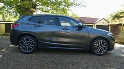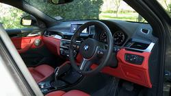 Even next to its bigger coupe-SUV BMW range stablemates, the X4 and X6, this MK1 X2 makes a distinctive impression. It's 49mm shorter and 69mm lower than the more sensibly-orientated F48-series X1 crossover model it was based upon, with short overhangs and a stretched, coupe-style roofline that creates a sporty, swept-back profile that's cool and eye-catching - but hardly very SUV-like. And at the wheel? Well seated inside, really the last thing you'd think you were in would be an SUV. The F48 X1 model this car's based on doesn't perch you up particularly high and in an X2, the front chairs position you another 20mm further down towards terra firma. That's the key change over an F48 X1. Otherwise, the cabin from that car replicates itself in this one, albeit with some extra more appealing trim pieces, contrast stitching on the seats and the dash and re-shaped, upholstered handles. As usual in the brand's models from this period, the iDrive infotainment set-up's freestanding multifunction colour screen takes pride of place in the middle of the fascia, set high enough up the dash to allow you to refer to it without taking your eyes too far off the road. As in most cars that are coupe-like, rear three-quarter vision is slightly compromised by the chunky rear pillars and the reduced size of the rear screen, so it's just as well that rear parking sensors were standard across the range. And in the back. Well you'd expect that the sweptback roofline would slightly compromise headroom in the rear and that's pretty much how it turns out once you get inside. On the plus side though, the seats position you quite high up for a decent view forward - and they feature reclining backrests for greater comfort on longer trips. As for the boot, once the powered hatch rises, you're provided with a very usable 470-litre space. Need more room? Well if the item in question is merely long and thin, like a set of skis, it may suffice merely to flatten the middle part of the standard 40:20:40 split-folding rear backrest.