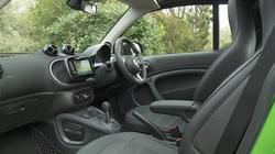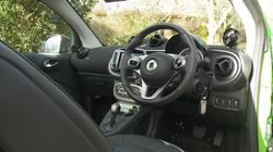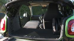 Styling-wise, full-electric cars tend to be divided into a couple of categories. There are those that like to trumpet their eco-minded credentials with futuristic design. And then there are models like this EQ fortwo that restrict references to their milk float mobility mandate to subtle - or as in this case, not quite so subtle - badging. As we've said elsewhere in this Review, this technology was fitted to all three of the smart brand's bodystyles - the fortwo coupe and cabrio and the five-door forfour hatch. At the wheel, you'll quickly find yourself wondering how on earth something so diminutively small outside can feel so large and airy within. The cabin of the electric drive variant was hardly changed at all over that of an ordinary combustioned-engined smart. In fact, the only initially obvious difference is the way the dinky little circular pod on the right of the dash top (which normally houses a rev counter and a clock) was changed into a power meter that as you drive, shows the charge you're using and the battery power remaining. Most eyes though, will be drawn towards the centre console, which on electric drive models is dominated by a standard smart Media-System, featuring a 7-inch touchscreen display and a TomTom navigation set-up. Otherwise, your main tools of operating functionality are housed in the semi-circular binnacle you view through the three-spoke leather-trimmed multi-function steering wheel. At the back with everything open, you get an amazingly tardis-like cargo bay, boot space unaffected by the electric drive powertrain because the battery is tucked away beneath the car. With both fortwo body styles, luggage room to the windowline is rated at 260-litres, while if you load to the roof, there's 350-litres in a fortwo coupe and 340-litres in the cabrio model.