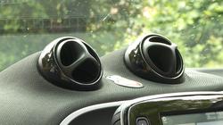 Would you like a fortwo cabrio? If you're urban-bound, it'd be hard not to be tempted by this MK3 model, providing the metropolis you have in mind isn't habitually smog-filled. Smart, we're told, is all about 'FUN.ctional' design and with that in mind, it helps that this feels like a proper convertible in a way that comparably-priced rivals from this period simply don't. The roof bars that you have to have permanently attached on comparably-priced rival models can, on a fortwo cabrio, be easily unclipped and then stored in this little compartment on the inside of the tailgate. From inside the car, the mechanism works by pressing a switch near the gear lever. Opening or closing can be done at any speed and the full process occupies just 12 seconds. You may not want complete activation or retraction though, given the appeal of a provided interim 'sunroof'-style setting. Out back, the twin-section tailgate was carried over from the previous model, complete with its user-friendly upper opening glass section. With everything open, you get an amazingly tardis-like cargo bay, boot space to the window line rated at 260-litres, the same as you'd get in the fixed-top model and 20-litres more than the previous generation model could offer. At the wheel, the spacial surprises continue and you'll quickly find yourself wondering how on earth something so diminutively small outside can feel so large and airy within. Unlike previous fortwos, you feel that you're in a proper car, rather than some kind of cramped urban mobility pod. The dashboard's a two-piece affair, with the upper part trimmed in a lovely mesh-effect fabric coating that looks great, though we wouldn't want to have to try and get melted chocolate out of it. This can be colour-co-ordinated alongside the central seat facings and the middle panels in the doors, with black, blue or orange themes. Further funky touches include the four spherical air vents with their friendly clickety mechanisms. And an unusually-configured air conditioning unit, on which the desired temperature can be set on a central scale you select from with the aid of a sliding magnifying glass.