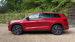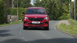 Skoda dressed the Kodiaq vRS carefully to match its premium performance station in life. So there are eye-catching 20-inch 'Sagitarius' alloy wheels, along with red 'vRS' badges on the nose and tail. Plus sleeker bumpers front and back, big bore dual exhaust tips and gloss back finishing for the roof rails, wing mirrors, window frames and front grille. None of this does anything to disguise this SUV's quite prodigious size; at around 4.7-metres in length, it's one of the biggest VW Group models to be spun off the conglomerate's MQB platform. Inside, you get carbonfibre trim and the obligatory sports steering wheel, plus aluminium pedals and sports seats upholstered in grippy alcantara fabric. There's a standard 9.2-inch centre-dash infotainment touchscreen and Skoda includes its 10.25-inch 'Virtual Cockpit' digital instrument binnacle. And in the rear? Well the second row bench features all the versatility you'd want from this kind of seven-seat SUV, so the backrest reclines for greater comfort on long journeys and the base slides back and forth by up to 180mm. So, what's it like in the third row? Well there, you're quickly reminded that this is an SUV, not an MPV. Overall though, the space in the very back isn't really any more restricted than it would be in any other mid-sized SUV of this kind - and uncomplaining adults joining you for short journeys will probably be quite glad of it. What about cargo capacity? With the tailgate raised, a huge aperture is revealed, complete with a usefully low loading sill. Most of the time, owners of seven-seat Kodiaq models are probably going to be using their cars with the rearmost seats folded into the floor, an action easy and simple to complete. In which case there's 630-litres of space on offer with the middle row sensibly positioned. Fold the second row bench and a class leadingly-large 2,005-litre space is revealed (or 2,065-litres in a five seat-only model).