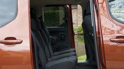 There's very little outward differentiation to identify this particular Rifter's all-electric status. Unless you notice the lack of tailpipes and the addition of a charging flap, extra badging and trim accents are the only giveaways. You'll really need the extra embellishment of the top 'GT' trim level though, if you want to distract the attention of passers-by from the fact that all you've actually really got here is a Peugeot Partner van with extra seats and windows. You get a choice of wheelbases - 'M' (for 'Medium'); or 'XL', the latter enabling the fitment of a third row of seats. At the wheel, at first glance anyway, it's much as in the old combustion-powered conventional Rifter (or indeed a Peugeot Partner van). That means that there's the brand's usual 'i-Cockpit' design, which uses this much smaller-than-normal little three-spoke wheel. You view the dials over the top of its rim, rather than conventionally through its spokes. Once you've got used to that, if you look a little closer around, you'll start to see some of this EV variant's model-specific differences. This little EV drive toggle switch, for instance, that takes the place of the usual gear selector. And of course there are EV-specific features on both of the provided displays. Let's start with the 10-inch instrument screen you view above the wheel rim, which in its standard layout has a battery indicator on the left, a digital speedo in the middle and a 'Power/Eco/Charge' drive meter on the right. Using this little rotary controller on the left hand steering wheel spoke, you can alter the screen layout through various settings; 'Energy', 'Dials', 'Driving', 'Navigation', 'Minimal' and 'Personal'. Whatever you choose, the resolution is sharply defined and easy to read. Which can't really also be said for the central 8-inch infotainment display. Still, at least it has a physical volume dial and, more importantly, it's not burdened with the climate controls (which are separated out further down the centre stack). We've saved arguably the best bit though, until last: cabin practicality. If you were to add up the capacity of all the 28 different nooks and crannies available within the interior of this Rifter, you'd arrive at a figure of 167-litres - about as much as you'd get in the entire boot of some city cars. Enough on what the front of the cabin's like: let's consider the second row. Both short and long wheelbase e-Rifter models offer access to this part of the car via sliding side doors. The sliding doors are rather heavy to close from the inside and this format means you can't have door pockets either. Still, on the plus side, the second row offers enough space to suit a wide variety of passenger shapes and sizes. Because the battery pack is mounted beneath this MPV model's floor, cabin space is not compromised at all over comparable combustion engined Rifter models. So there are vast standards of headroom and because the centre transmission tunnel is virtually non-existent, it's straightforward to accommodate three fully-sized adults if need be. If you're able to stretch to the top-spec 'GT' level of trim, you'll get the three individual rear seats that really ought to be optional further down the range. With base 'Allure Premium'-spec though, you'll be stuck with the conventional fixed bench, which really doesn't do very much at all, unable to slide or recline in the way you'd hope an MPV model rear seat might. All e-Rifters get these aircraft-style seatback tables with cup holder points, but you don't get the useful under-floor storage compartments that used to feature on the old combustion models; blame the bulky EV powertrain below you for that. Twin vents are provided back here - and you get a separate climate control if you've a model with the dual-zone system fitted. Lower down, there's a USB socket too. And that's about it, assuming you've gone for a 'Standard'-length five-seat short wheelbase Rifter. Were we to be buying this Peugeot though, we'd be tempted to pay the small amount extra for the 'Long' body style with its two extra boot-mounted chairs. The fact that these sit within a spacious 4.75m body shape means that they can, at a pitch, be quite comfortably used by adults on short-to-medium-length journeys. It's just another example of this Peugeot's flexibility. Let's consider boot space. Whatever way you opt for this Rifter, its cargo area will be vast and the clever battery pack under-floor placement we mentioned earlier means that the capacity figures are unaltered from those of the previous combustion-powered models, though there's no storage space beneath the floor in this one. But you don't really need it because even the 5-seat short wheelbase 'Standard' length variant can swallow 775-litres in its boot, while the lengthier wheelbase 'Long' version has a capacity of up to 1,050-litres. The parcel shelf at the back can take up to 25kg of weight (so, for instance, you could put the dog on top of the shopping). Fold down the 60:40-split rear bench and up to 3,000 litres is freed up; with a 'Long' wheelbase model, it'd be up to 4,000-litres with both the back seating rows folded. In addition, with either body style, if you're taking really long items, the front passenger seat can be folded flat, allowing items like surfboards of up to 3,050mm long to be taken inside 'Long'-spec models.