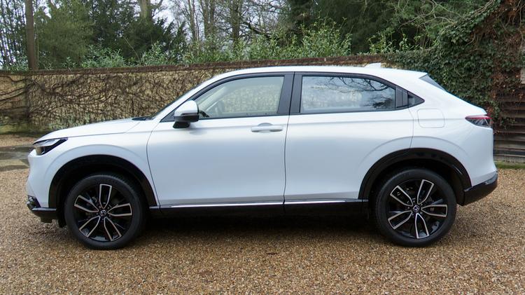 Here's a car that's very much of the moment - a crossover-SUV that combines this genre's higher stance with a raked rear window and design details likely to appeal to many customers in the market for a small-ish SUV offering a reasonable combination of practicality and panache. Although it shared its underpinnings and much of its engineering with Honda's Jazz supermini, the MK3 HR-V was, to all intents and purposes, a clean-sheet design. The smartest volume brand model in the segment from this period? We'd subscribe to that view; you may not. These things are subjective aren't they? If you're wondering why this Honda costs a little more than obvious rivals, get out your tape measure. It's 110mm longer than a Renault Captur E-TECH 145, 135mm longer than the Hyundai Kona Hybrid and a full 160mm longer than the Toyota Yaris Cross. At the wheel, anyone switching from the previous generation HR-V will feel they've jumped forward a decade. You might not mistake this for a premium brand model, but there's an impressive sense of calm and cohesion here, aided by the almost unbroken horizontal trim strip running across the front of the cabin, the centre of which is topped by a high-mounted 9-inch touchscreen. Horizontal vents stretch across the fascia just above it, while lower down, it's unusual to note that there's no centre stack: in its place, an unusual swirling strip, chrome-plated above base trim, encircles the gear lever, with storage areas above and below. Above entry-level trim, neat little vent controls at the corners of the dash offer a 'diffuse' setting, which promises to spread the air more evenly around the cabin. As usual on a Honda, the driving position's exemplary and everything falls instantly to hand. Looking through the steering wheel, there's an unusual combination of physical speedometer dial on the right and configurable information screen on the left. There are no configurable screen styles or GPS mapping options - just a whole list of ways you can display information in the left hand virtual dial. In the rear, there's certainly plenty of leg room, helped by a lot of space between the floor and the bottom of the front seats. In fact, there's 35mm more legroom than the previous HR-V provided, and the seats themselves are nicely contoured, though not super-supportive. The outer two positions are of course very much the preferred place to be - anyone seated in the middle will find themselves perched on a rather flat and raised cushion and reaching for belts integrated into the ceiling, though at least they'll have some leg space because of the flat floor and the positioning of the centre console. These rear seats don't slide or recline - but they are of Honda's 'Magic' variety, so feature the brand's party trick folding mechanism. That means the seat base can be flipped up towards the back of the car, cinema-seat-style, enabling taller objects - such as an electrical item or that tall plant you've purchased from the garden centre - to be carried behind the rear seats. Finally, let's consider the boot. If you remember the body length dimensions we mentioned earlier, you'll be expecting it to be segment-leading, so it comes as a bit of a surprise to find that the tailgate (power-operated above entry-level trim) rises to reveal one of the smaller trunks in the sector - 319-litres in size. At least the opening is wide and deep and the lip's pleasingly low, which should make is easy to move heavier or bulkier items in and out. It's a shame Honda didn't include either a ski hatch or a 40:20:40 seat back-split; as a result, if you've a couple of rear passengers, longer items will have to go on the roof. To drop the 60:40-split rear backrest, you'll probably have to go round to the side to operate the catches. Still, at least there, you'll be able to better appreciate the other advantage of that 'Magic Seat' folding mechanism we mentioned earlier. This neatly cantilevers the seat base when it folds so that you get a completely flat load area - though still not a very large one, the 987-litre figure 200-300-litres down on some rivals. In short, that useful seat flexibility costs you a little in capacity, but Honda owners will usually tell you that the trade-off in usability is well worth it.