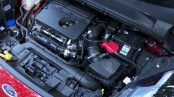 The Puma's sporty styling, with its sloping roof line silhouette and pronounced wheel arches, lends itself to the more extreme design of this ST variant. In this case, those arches shroud the eye-catching 19-inch Magnetite alloy wheels which feature evocative red calipers and are shod with grippy Michelin Pilot Sport 4S rubber. Rear privacy glass and a black-painted contrast-colour roof complete the profile signature and there's a bespoke finish for the door mirror caps. There's plenty of overtaking presence too. A Ford Performance-embossed splitter is integrated into the front bumper to increase front end downforce by almost 80% for greater stability and traction. Signature ST upper and lower grilles meanwhile, are designed to deliver increased engine cooling capability. The large rear roof spoiler also supports optimised aerodynamics, with a distinctive diffuser incorporated into the rear bumper, which incorporates a dual chrome exhaust. The Puma name gains black lettering and, as on the standard model, you get large split LED tail lamps and big lower corner reflectors. As you take a seat at the wheel, you're greeted by an 'ST- Ford Performance' start-up display on the centre monitor and an animated Puma on the instrument screen. You'll like the standard, well bolstered Recaro sports seats, which are heated, embossed with the ST logo and finished in partial leather and a grippy Miko Dinamica material. There's also a red starter button, an aluminium-faced gear knob with red ratio designations, 'Ford Performance' door entry scuff plates and silver alloy sports pedals. Plus you get white stitching on the wheel, the seats, the handbrake and the gearshift gaitor. The flat-bottomed ST sports steering wheel has a button from which you access the various drive modes and a 'Sport S' short cut switch for the 'Sport' setting that Ford thinks you'll be using quite regularly. In addition, this 12.3-inch instrument cluster screen has two added ST displays, one for 'Performance Gauges' (which shows oil temperature, oil pressure and turbo psi); and the other for 'Performance Details', which displays these things in real time as you drive. It all sets the right sort of tone for the driving experience to come. In the rear, it's fairly tight in terms of both leg and knee room - though you'd expect that in a supermini-based SUV. Otherwise though, a couple of six-footers would be comfortable enough, helped by the way they could slide their big size 10s under the seat in front. Unfortunately, Ford didn't think to provide USB charging points for them (even as an option). There are no grab handles above the rather small side windows and the headrests dig uncomfortably into your back until you raise them, but you get coat hooks on either side and a big overhead light. Out back, a handsfree powered tailgate was optional, but you don't really need it because the hatch is light to lift and opens to reveal something unusual: a decently-sized boot in a small Ford. This one has a 456-litre capacity - one of the largest in the segment. When you lift the tailgate, the parcel shelf rises out of the way with it, flat against the tailgate glass. Equally neat is the adjustable-height boot floor, beneath which lies this 68-litre recessed well - Ford enthusiastically called it a 'Megabox'- which allows you to carry tall items like electrical equipment upright. Push forward the 60:40-split rear backrest and a 1,216-litre space reveals itself.