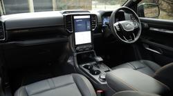 The vast majority of Ranger customers will be choosing between Ford's offered range of proven Single-Turbo and Bi-Turbo 2.0-litre in-line four cylinder diesels. The Single-Turbo 170PS unit is the engine you'll need if you want manual transmission or the single cab body style with your Ranger. You're more likely though, to want the Bi-Turbo powerplant we tried, which puts out 205PS and can only be had with a 10-speed auto. The faster alternative is a 3.0-litre diesel V6 with 240PS, which also uses the 10-speed auto. You can also ask your dealer about a PHEV version, which combines a 2.3-litre EcoBoost petrol engine with an electric motor and a rechargeable battery system. When fully charged, a (rather unremarkable) EV range of up to 28 miles is promised. The top Raptor performance model uses a 3.0-litre EcoBoost V6 petrol unit with 292PS, but can also be ordered with the previous generation model's 210PS 2.0-litre diesel. For mainstream Rangers, Ford has developed a couple of four-wheel drive systems - a basic electronic shift-on-the-fly system for more affordable Ranger models. Or the more advanced full-time four-wheel drive system with a set-and-forget mode for the top automatic variants, including the volume 'Wildtrack' version we tried. Avoid base 'XL' trim and you get some basic drive modes - 'Normal', 'Eco', 'Slippery' and a 'Tow/Haul' setting you'll need to maximise the 3,500kg braked towing capacity that most variants offer. The more advanced full-time e-4WD system we tried adds a 'Terrain Management System' which on the 'Wildtrak' model is controlled by a rotary dial between the seats: a twist of this and you've access to a couple of extra modes - 'Mud/Ruts' (which maximises drive-off grip and keeps the tyre tread clear of mud) and 'Sand' (which optimises power delivery and gearshifting to maintain momentum in sand and snow). In the centre of the dial are your main drivetrain buttons - '2H', '4H', low range '4L' and the 'set-and-forget' '4A' auto 4WD setting. Across the line-up, pick-up regulars will immediately note after the first half mile that the steering isn't as slow as it usually would be in a truck; and that body roll is better controlled than it normally would be in a vehicle of this type. The ride's a bit better this time round too, thanks to the way that the rear suspension dampers have been shifted outboard of the frame rails. Ford, it seems, still knows a thing or two about R&D dynamics.