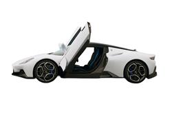 As you set off, there's a satisfying exhaust crackle from the twin turbocharged V6 behind your head. Maserati engines are no longer sourced from previous partner Ferrari. This one, a 3.0-litre powerplant known as 'Nettuno' (Italian for 'Neptune') was entirely developed in-house and puts out 630hp to the rear wheels via an 8-speed auto gearbox borrowed from the current Chevrolet Corvette. You select gears via huge shift paddles off the steering wheel and a rotary controller offers four drive modes - 'Wet', 'GT', 'Sport' and 'Corsa' [which is the race mode]. Two levels of damper stiffness feature in each of the drive setting. Helped by launch control, the MC20 is brutally quick off the line, dispatching 62mph in just 2.9 seconds. 124mph passes in just 9 seconds on the way to a top speed of 203mph. Whether you'll like the dramatic orchestral accompaniment as you go quite as much might depend on how much of a Maserati loyalist you are. The elegant roar of the brand's past normally aspirated powertrains is replaced here by an altogether different melody of turbocharged whooshes and guttural barks. Which is all very supercar-like, but Maserati says that its also developed this car for everyday driving and the supple quality of ride really reflects that; you can enjoy this car as much on a long distance GT trip as on your favourite winding back road. Even more pleasingly, this car stops as it goes thanks to standard carbon ceramic discs - 330mm at the front and 350mm at the rear - which work with calipers that have 6-pistons at the front and 4 at the rear. Through the turns, the MC20 loves to change direction - like a shark turning towards a meal, but without the track refugee nervousness that you might get in a rival McLaren or Lamborghini of this kind. It's just everyday more usable. Despite quite a prodigious kerb weight of well over one and a half tonnes, the Italian maker's really nailed this, with traction through the turns aided by a mechanical limited slip differential you can, on request, swap out for an even faster-reacting electric system.