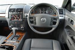 The Touareg is full of surprises. First off is the name, a version of the African Toureg tribe (literally 'Free Folk') that somehow gained an extraneous 'a'. Manufactured in Bratislava in Slovakia, the Touareg and the Porsche Cayenne share the same chassis, transmission, AWD system, suspension, windshield, doors, and some sheet metal. Although the two vehicles were largely co-developed, Porsche and Volkswagen parted company two years before the introduction of the pair to work in secret on the remaining aspects of the cars. As a result, the Volkswagen is the more accomplished off road whereas the Porsche, somewhat unsurprisingly, holds an edge on the blacktop. First shown at the Paris Motor Show in September 2002, the Touareg arrived in dealer's showrooms very quickly thereafter, being available in Germany in December 2002 and landing here in the UK in early May 2003. No fewer than four engines were offered; 3.2 and 4.2-litre petrol versions and 2.5 and 5.0-litre TDI diesels. A 3.0-litre V6 TDI engine was added in the autumn of 2004. The imminent arrival of Audi's Q7 in the Summer of 2006 presented Volkswagen with a big problem. The Touareg was going to impinge directly on the Audi's territory and action had to be taken to avoid the two stablemates scuppering each-other's chances. So it was that the Touareg range was revised in Spring 2006 with prices cut by over £2,000. The trim range became standard, SE and Altitude with the latter model offering real road presence via some massive alloys and bodystyling features. The big V8 petrol engine was replaced by a 3.6-litre V6 FSI unit at the same time. The 2007 model year facelift brought the H-shaped chrome grille to the Touareg's nose pulling it in line with the growing band of other Volkswagen products to sport this styling treatment. Revised wing mirrors and light clusters also featured as did a collection of technological innovations, most of them optional. One that was standard is the ABSPlus braking system which can cut braking distances by 20 per cent on muddy surfaces. The range-topping R50 version was launched in early 2008 with a 345bhp version of the V10 TDI engine. Then the 3.0 V6 got a power boost to 237bhp and a BlueMotion model was introduced in mid 2009. Using a 222bhp version of that engine and some other modifications, it achieved 34mpg, not bad for a luxury 4x4.